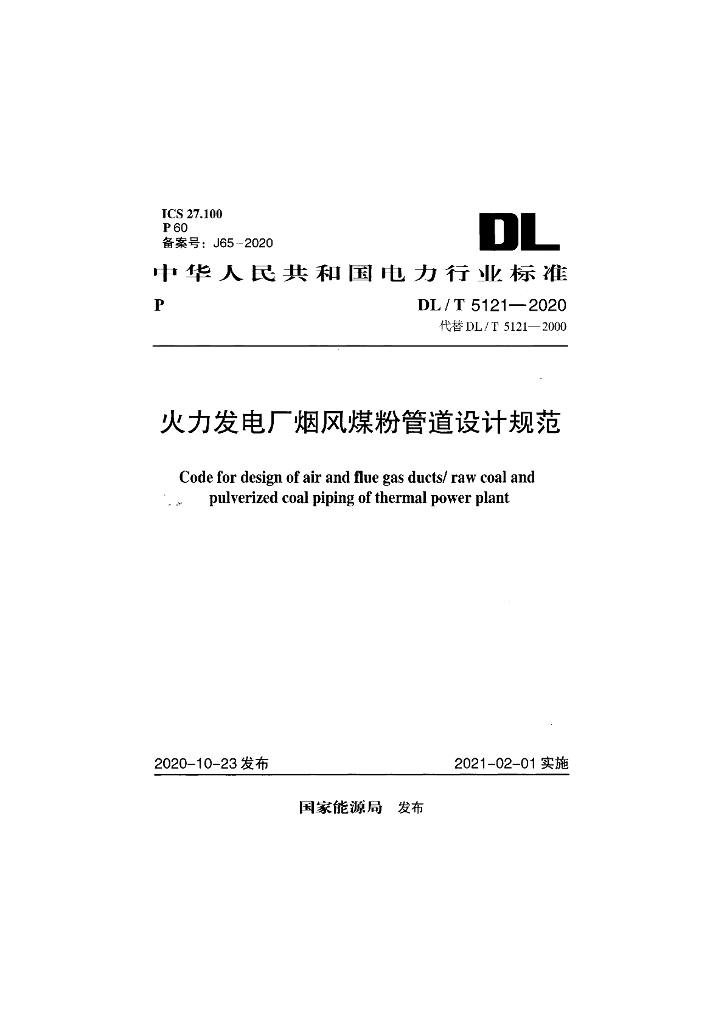 DL/T 5121-2020 火力发电厂烟风煤粉管道设计规范