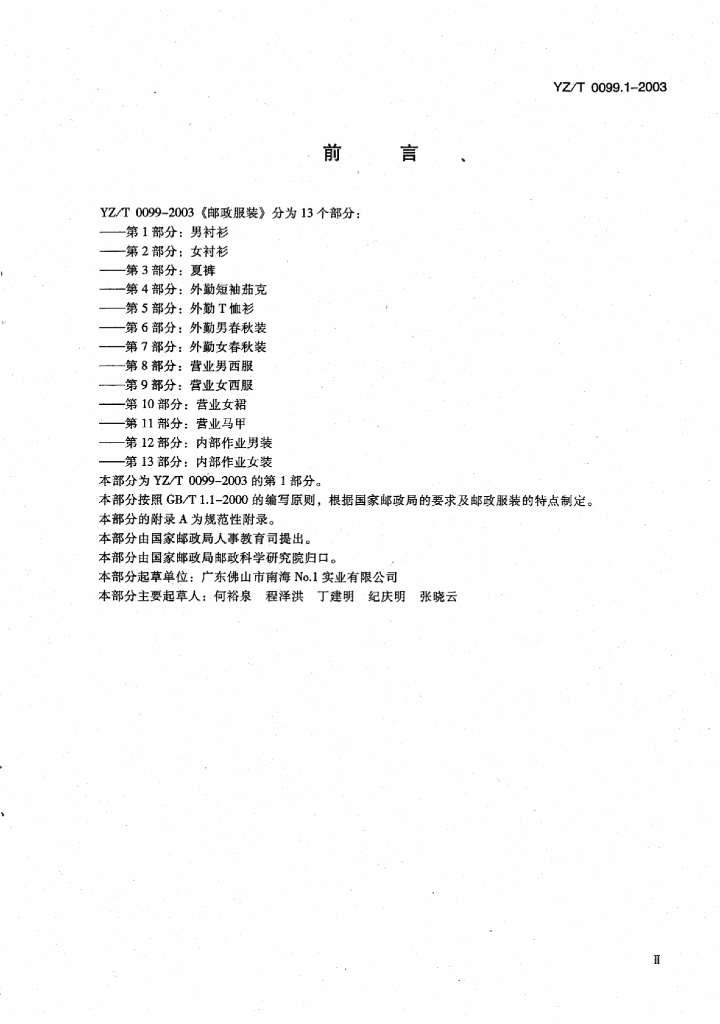 YZ/T 0099.1-2003 邮政服装 第1部分:男衬衫