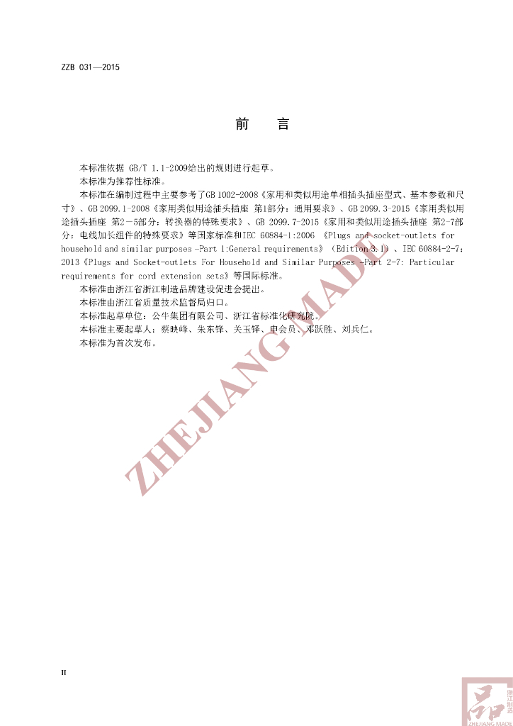 本标准起草单位:公牛集团有限公司、浙江省标准化研究院。