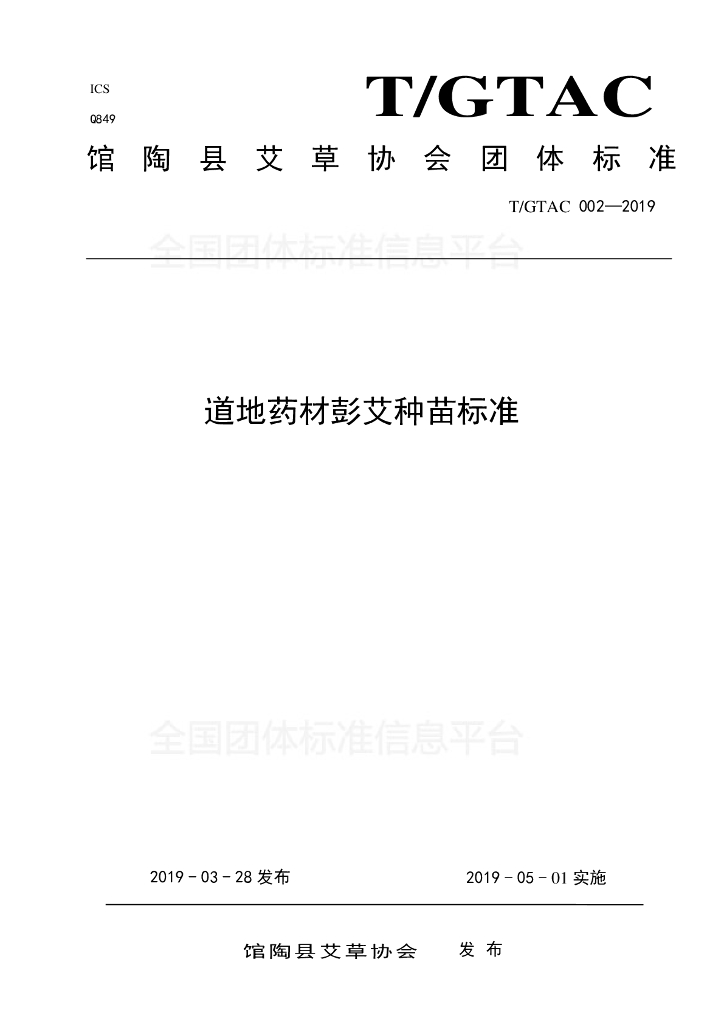 T/GTAC 002-2019 道地药材彭艾种苗标准