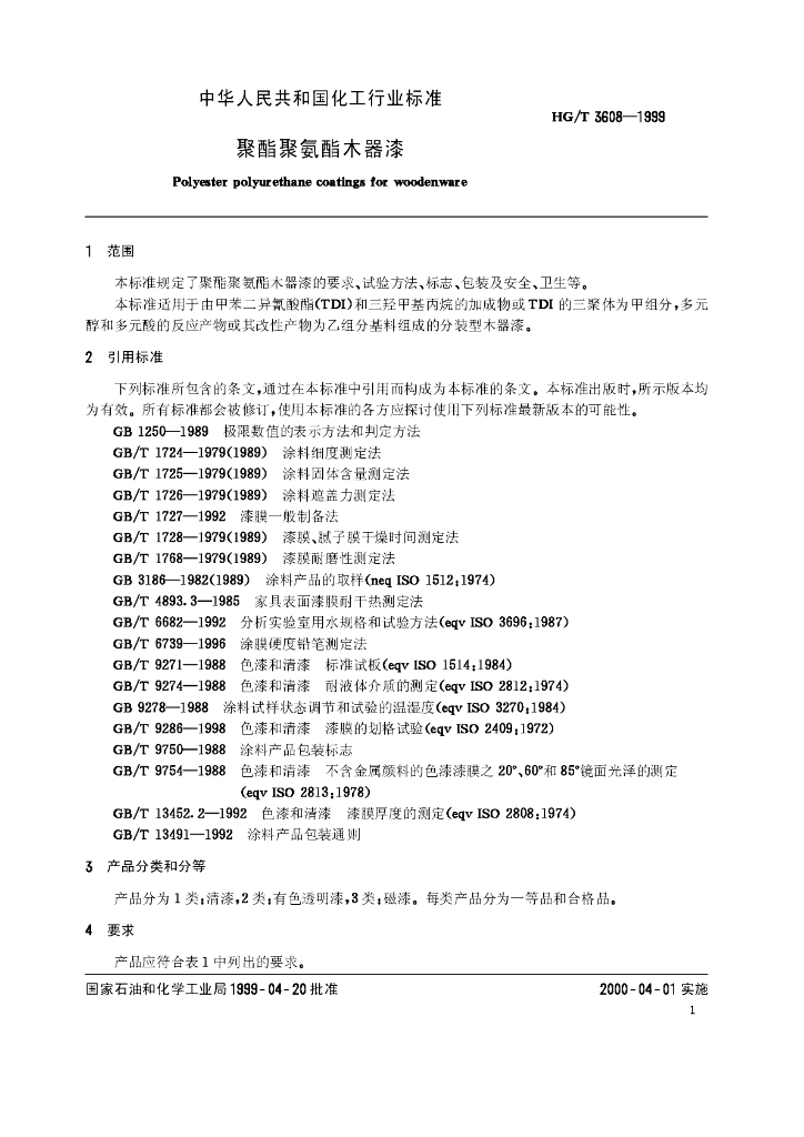 HG/T 3608-1999 聚酯聚氨酯木器漆