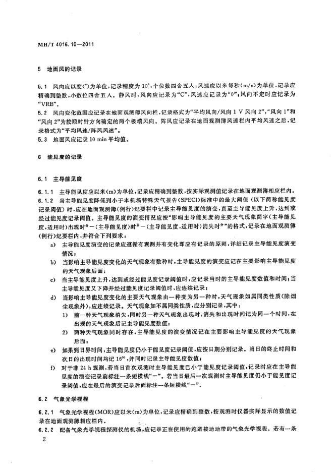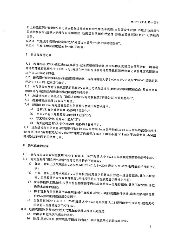 MH/T 4016.10-2011 民用航空气象 第10部分:地面观测记录