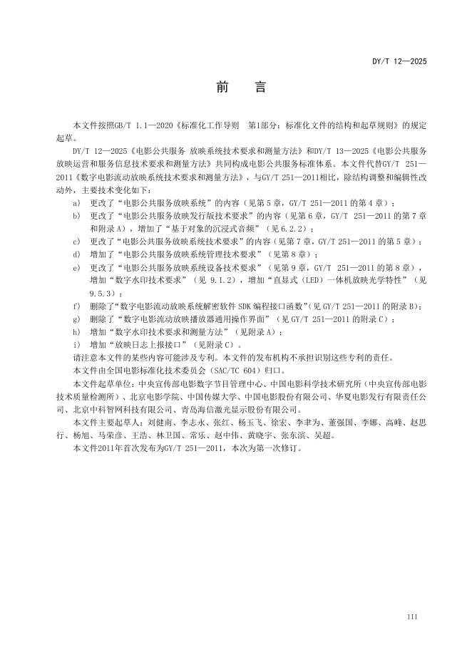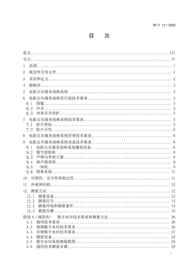 DY/T 12-2025 电影公共服务 放映系统技术要求和测量方法