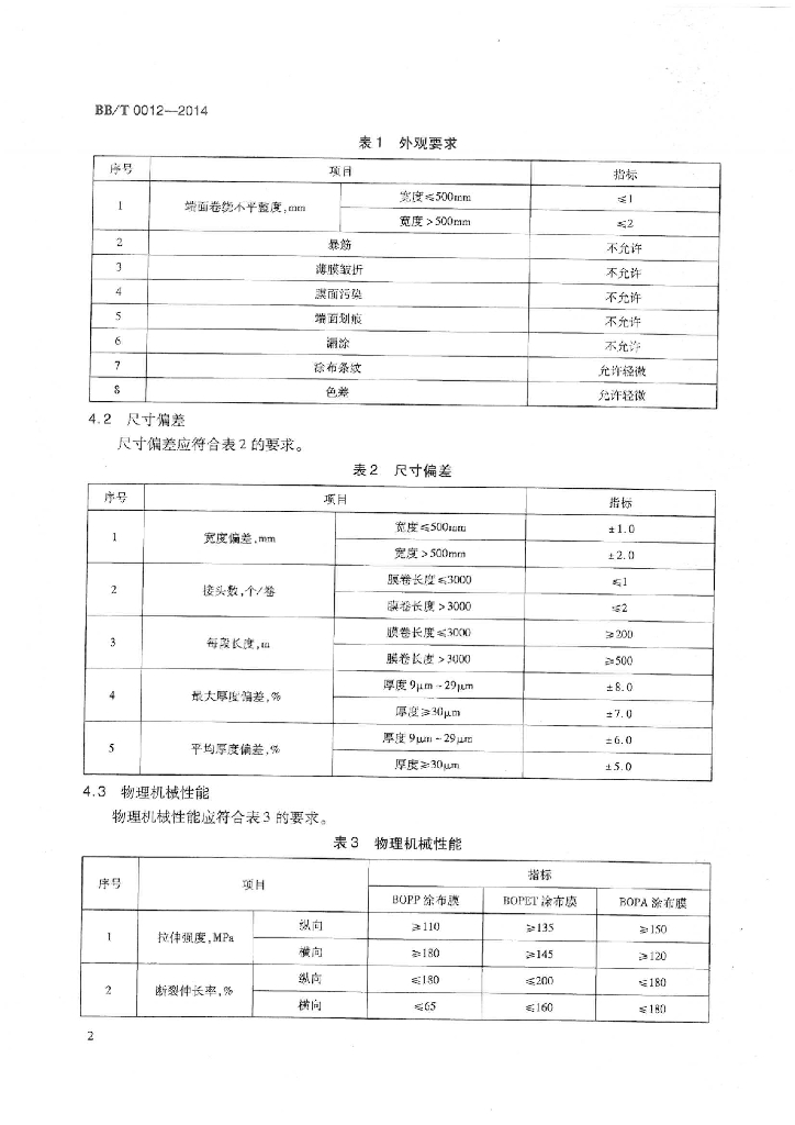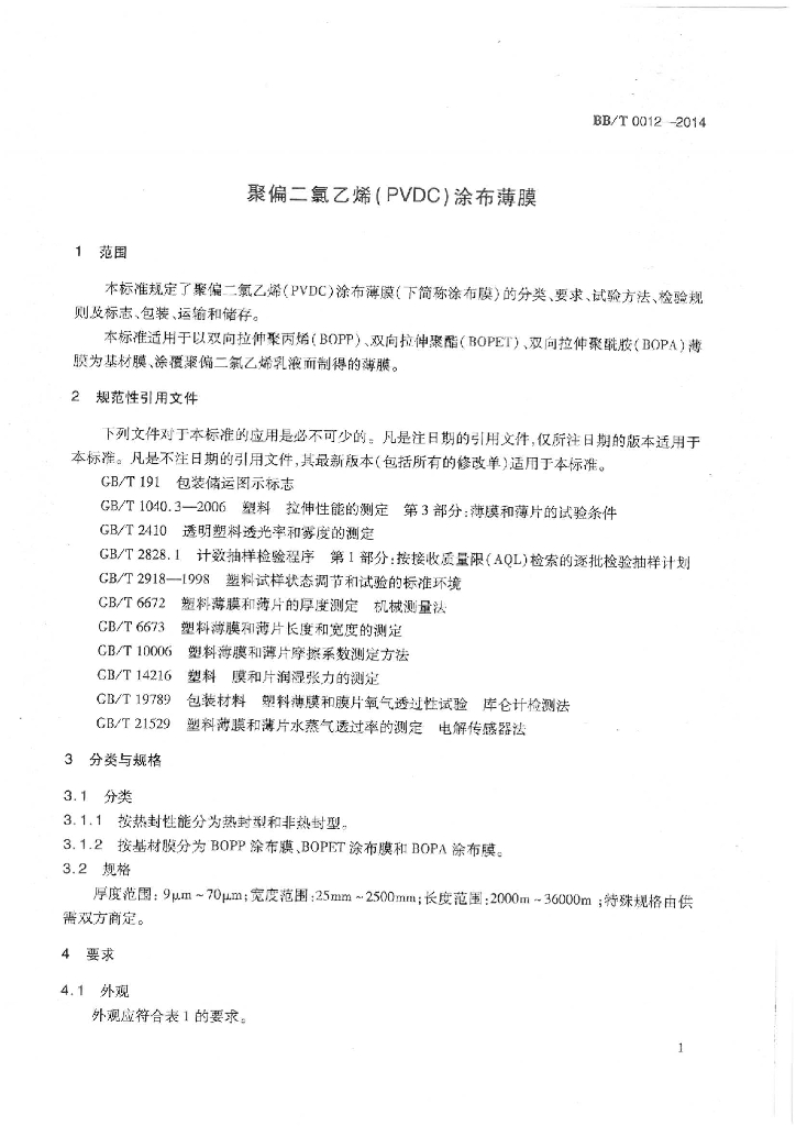 BB/T 0012-2014 聚偏二氯乙烯(PVDC)涂布薄膜