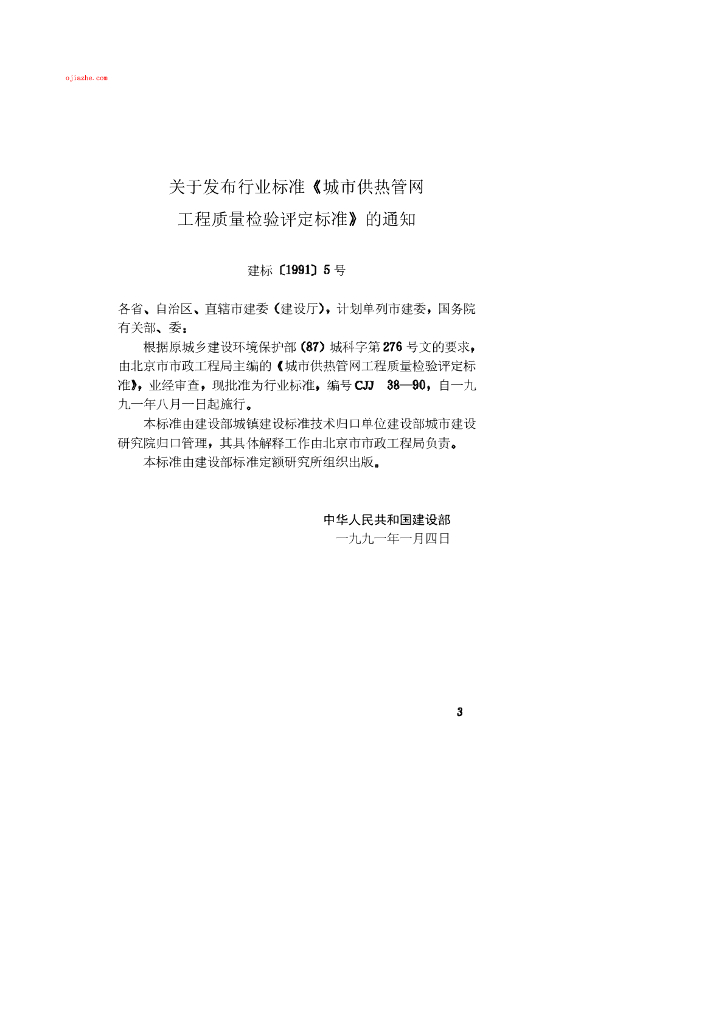 CJJ 38-1990 城市供热管网工程质量检验评定标准