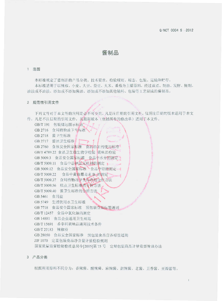 Q/NCT 0004S-2012 酱制品