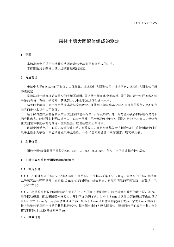 LY/T 1227-1999 森林土壤大团聚体组成的测定