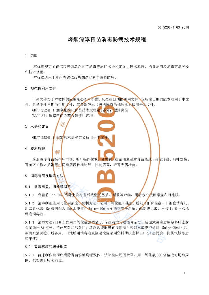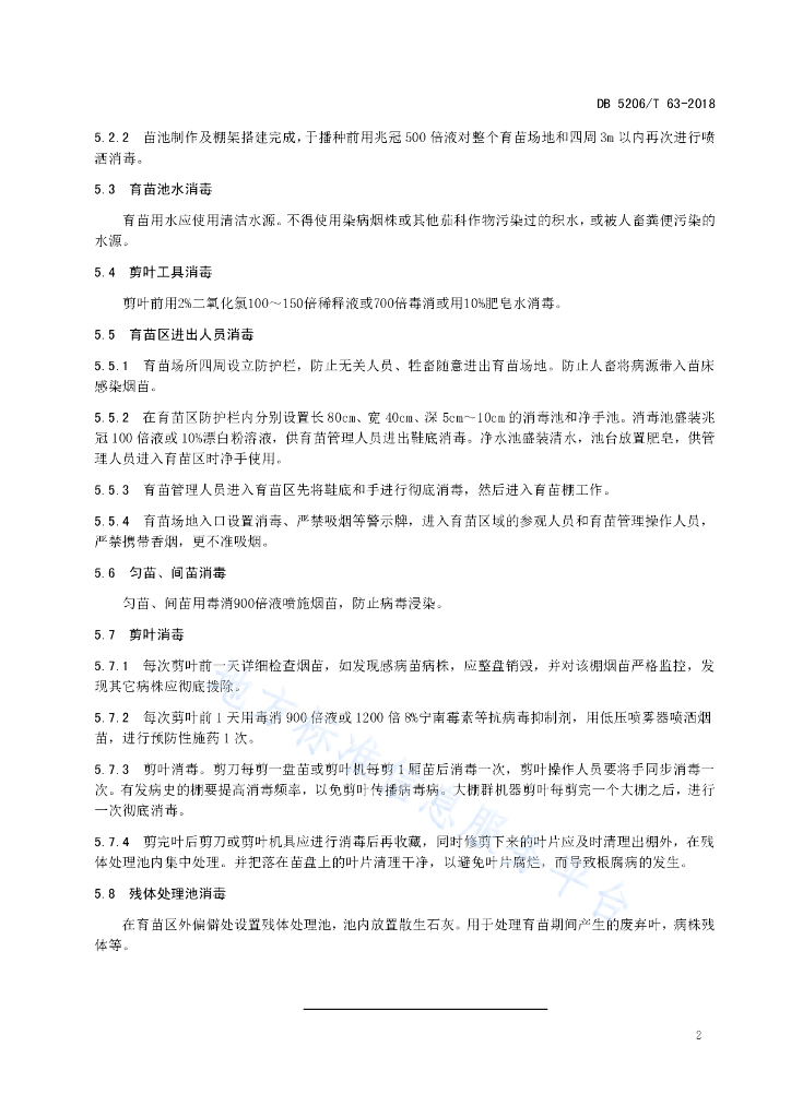 DB5206/T 63-2018 烤烟漂浮育苗消毒防病技术规程