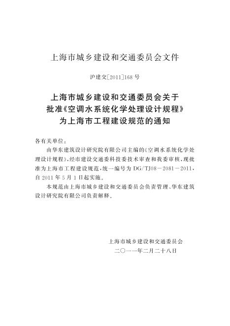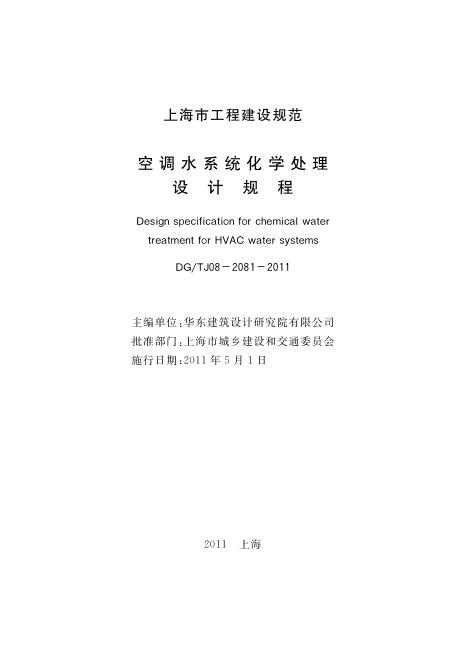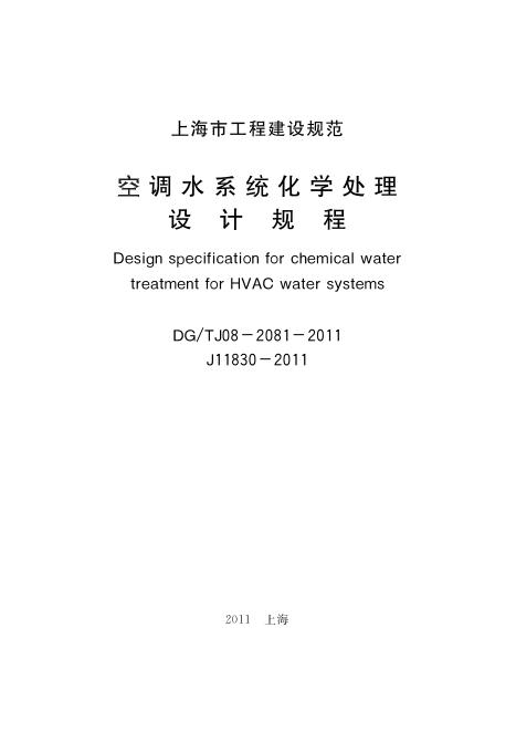 DG/TJ 08-2081-2011 空调水系统化学处理设计规程