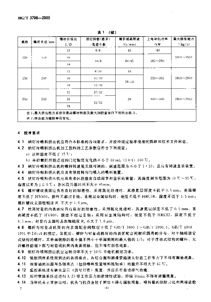 HG/T 3798-2005 销钉机筒冷喂料挤出机