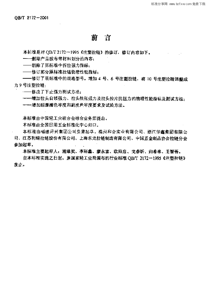 QBT 2172-2001 注塑拉链