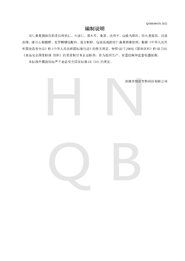 Q/JHS 0042S-2022 双仁桑果固体饮料