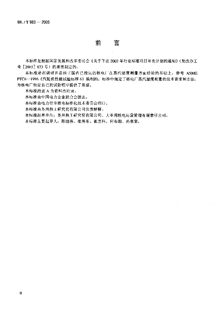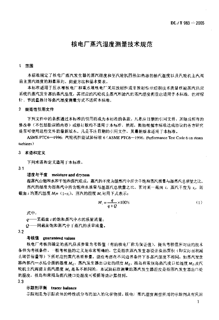 DL/T 983-2005 核电厂蒸汽湿度测量技术规范