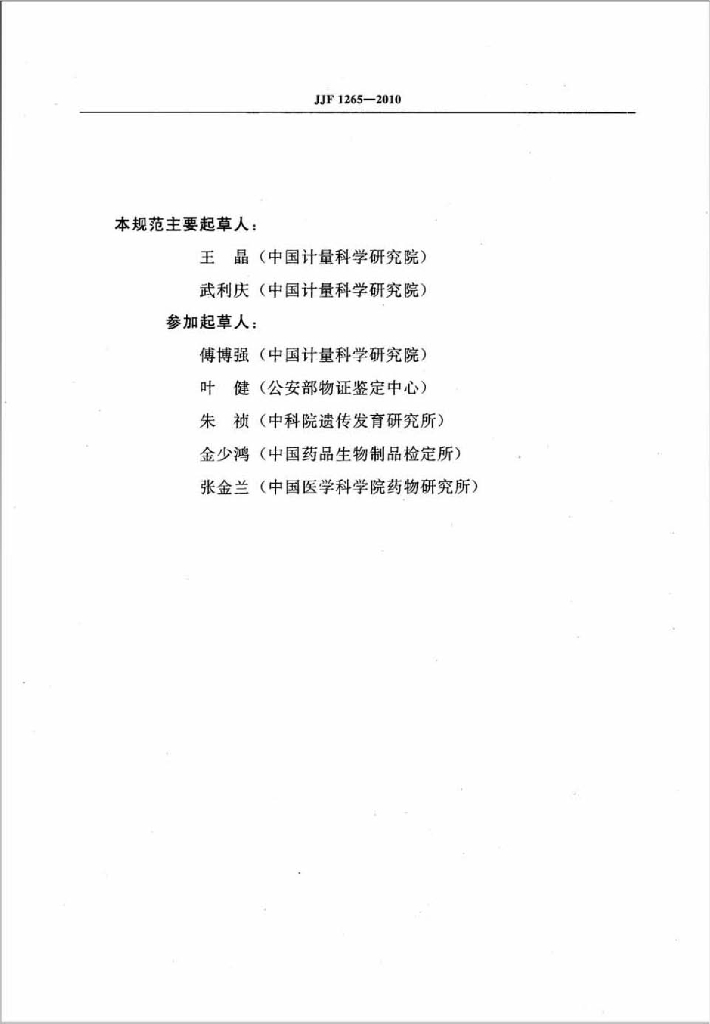 王晶(中国计量科学研究院)、武利庆(中国计量科学研究院)、傅博强(中国计量科学研究院)、叶健(公安部物证鉴定中心)、朱祯(中科院遗传发育研究所)、金少鸿(中国药品生物制品检定所)、张金兰(中国医学科学院药物研究所)