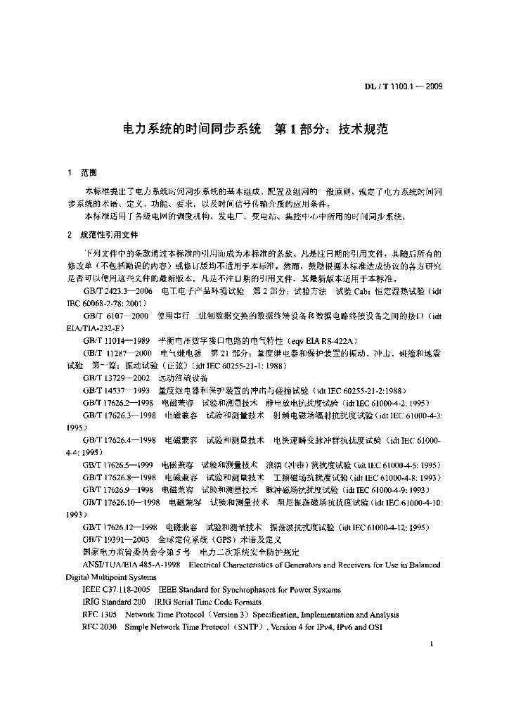 DL/T 1100-2009 电力系统的时间同步系统(第1-2部分)