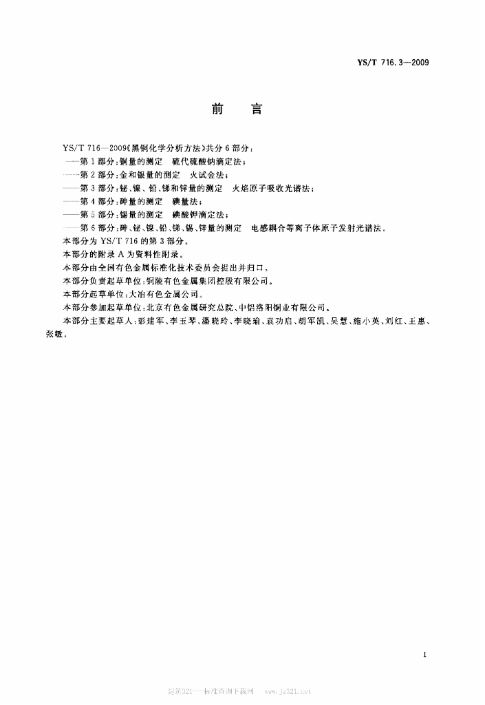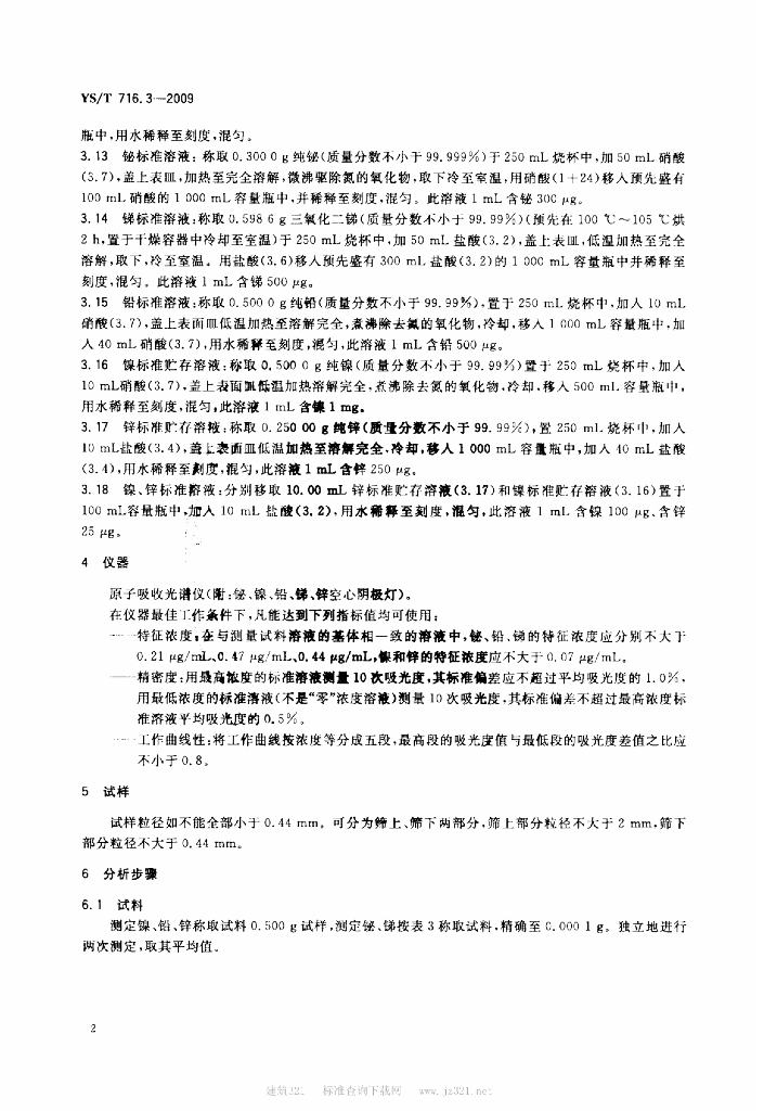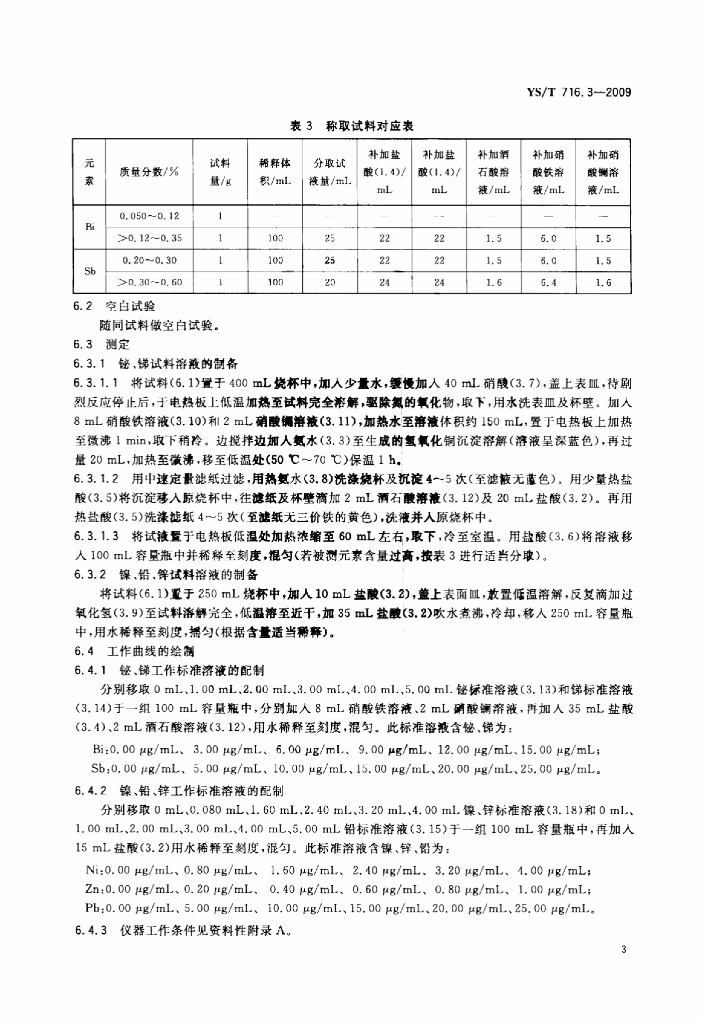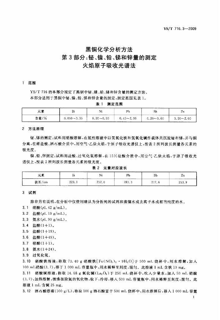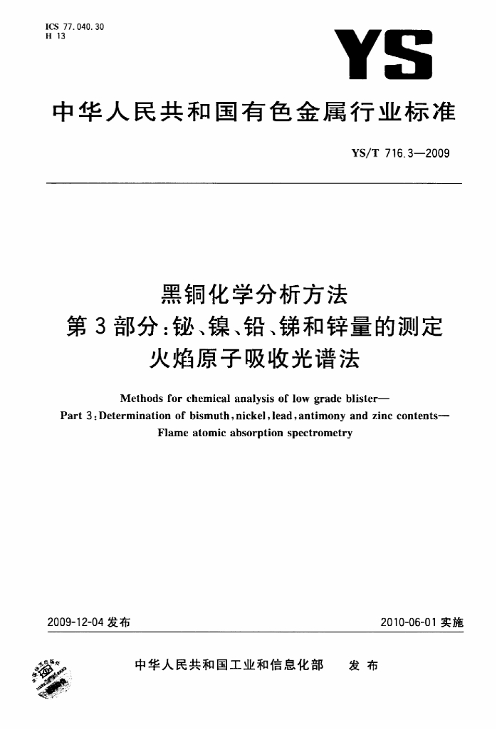 YS/T 716.3-2009 黑铜化学分析方法 第3部分:铋、镍、铅、锑和锌量的测定 火焰原子吸收光谱法