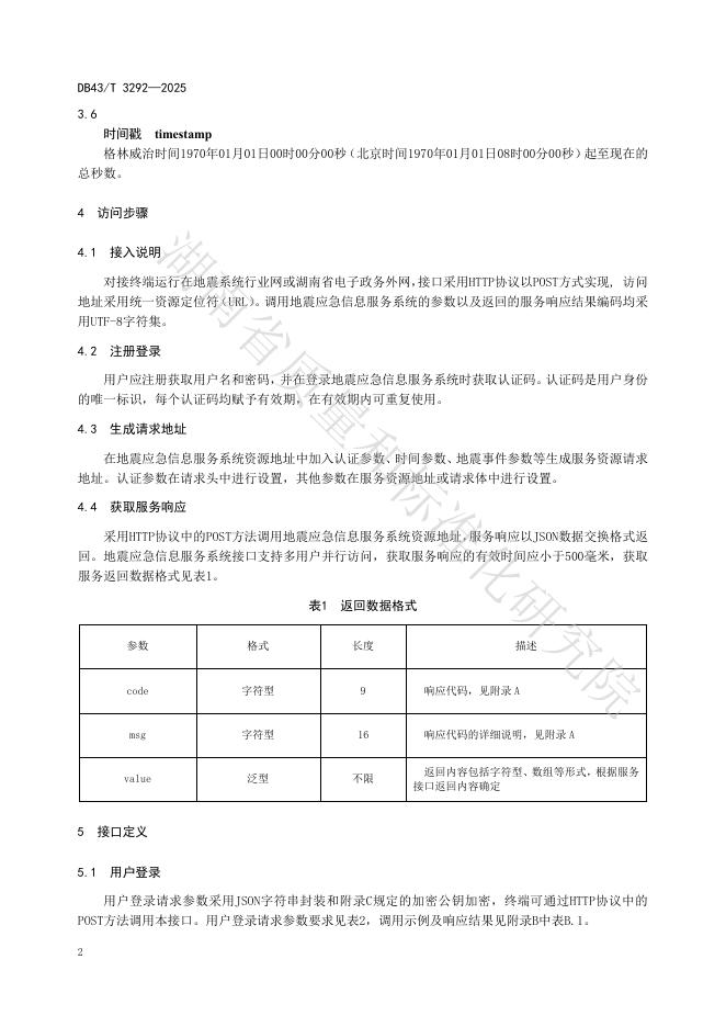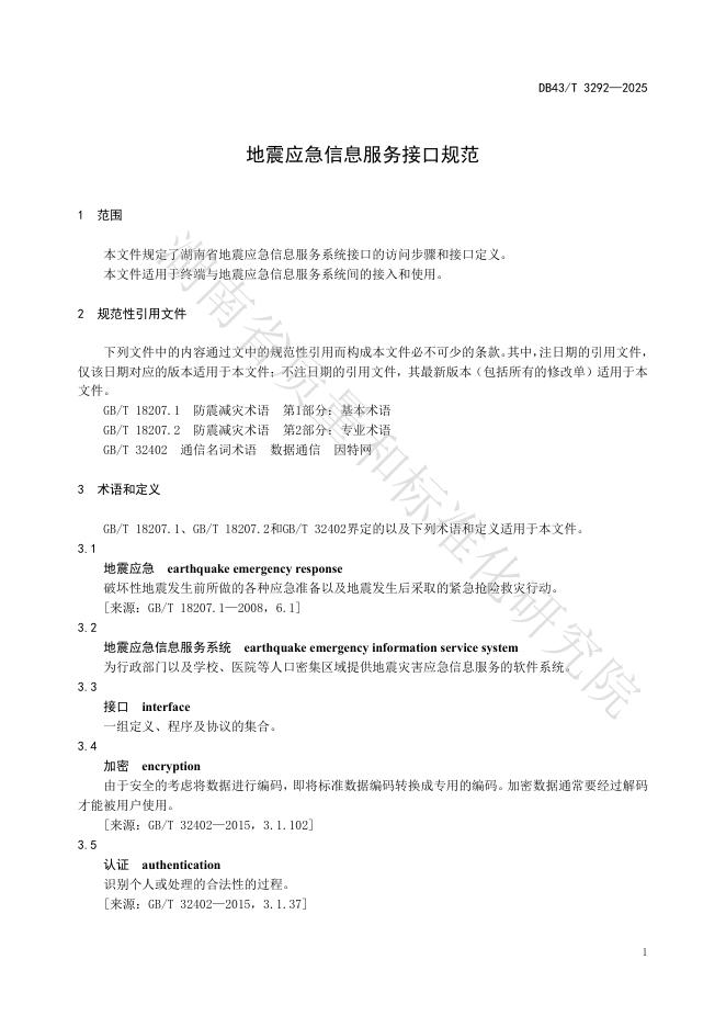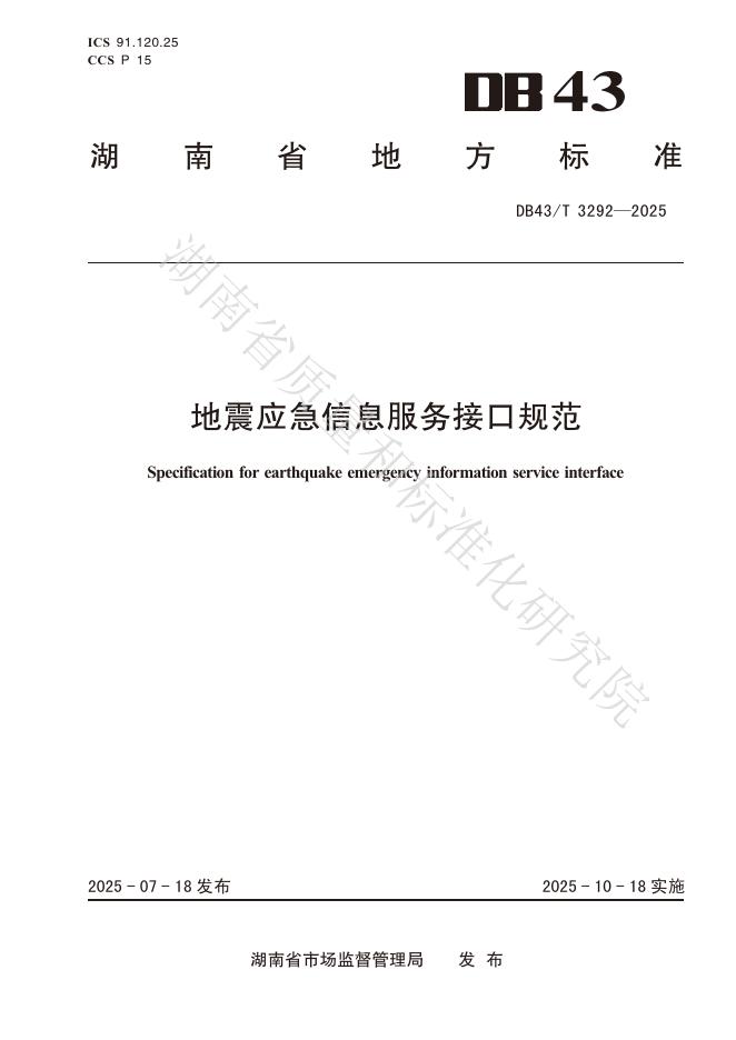 DB43/T 3292-2025 地震应急信息服务接口规范