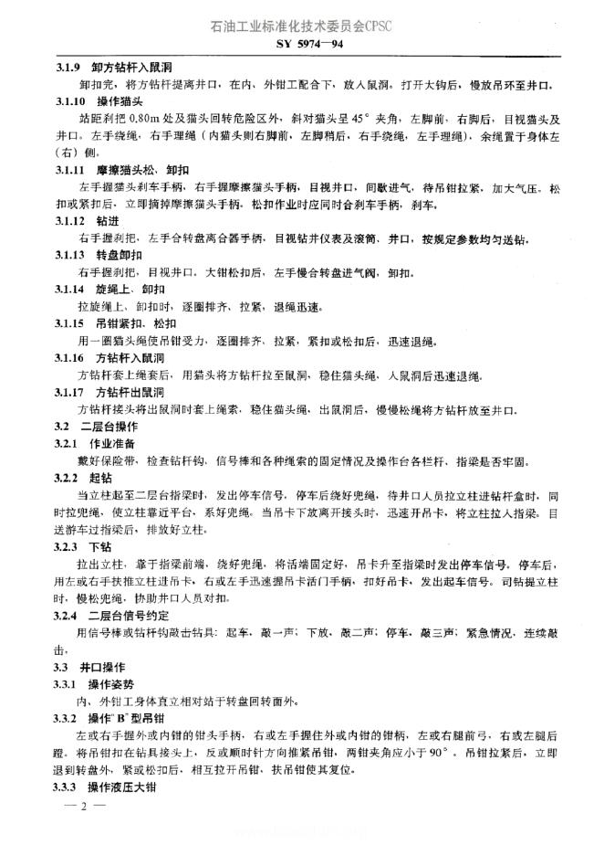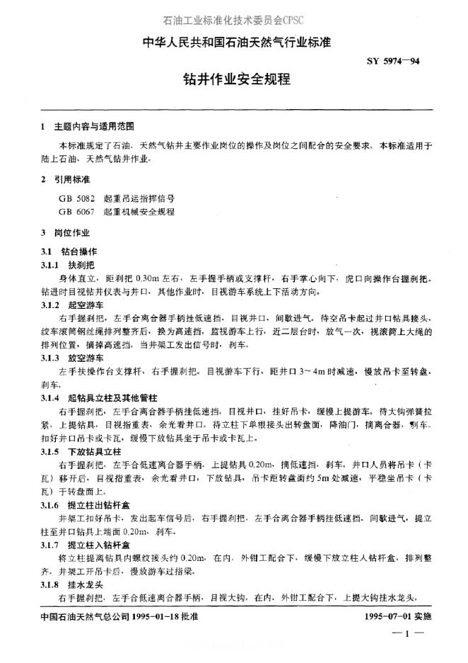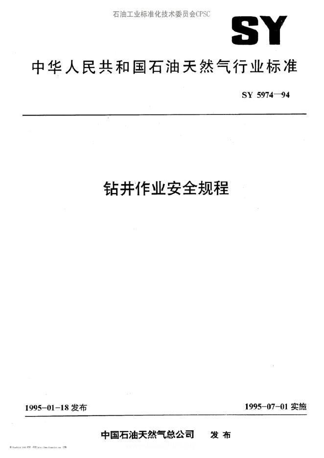 SY/T 5974-1994 钻井作业安全规程