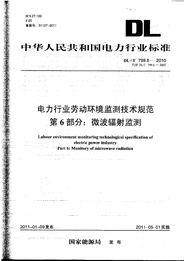 DL/T 799.6-2010 电力行业劳动环境监测技术规范 第6部分:微波辐射监测