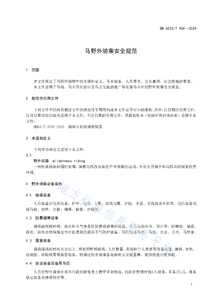 DB6523/T 404-2024 马野外骑乘安全规范