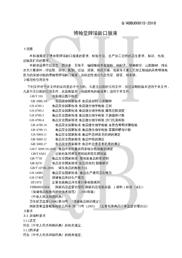 Q/ABBU 0001S-2018 博翰堂牌瑞龄口服液