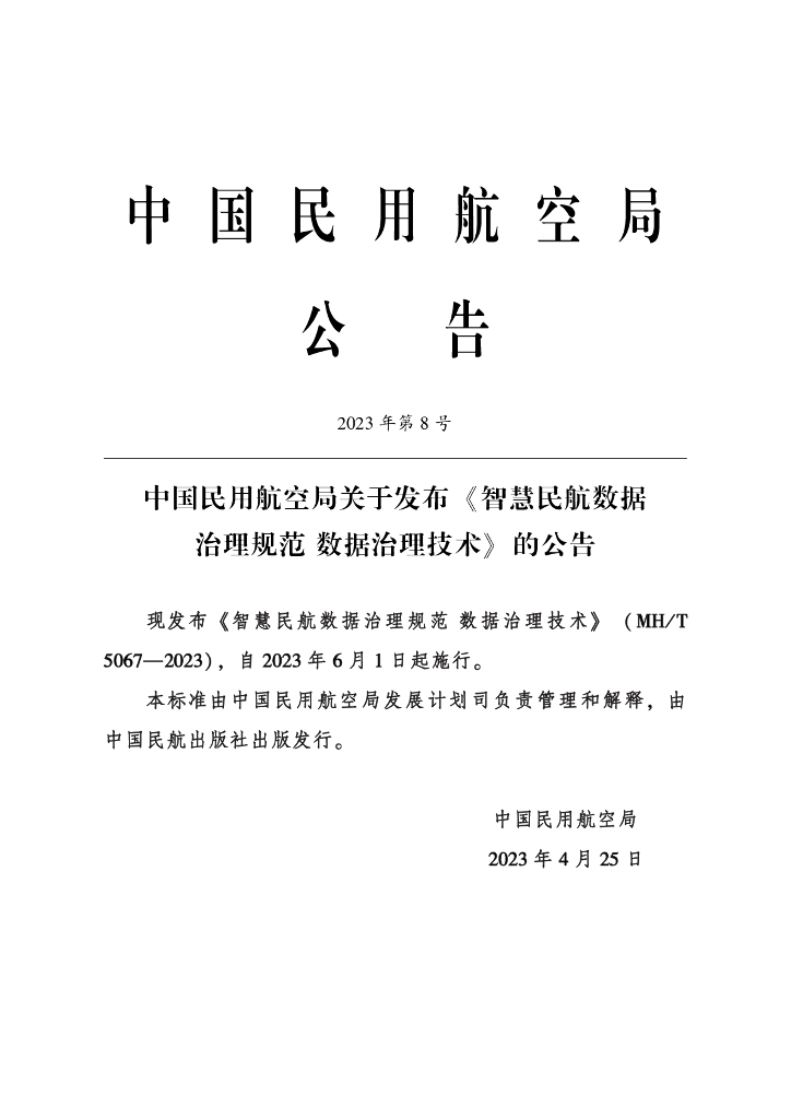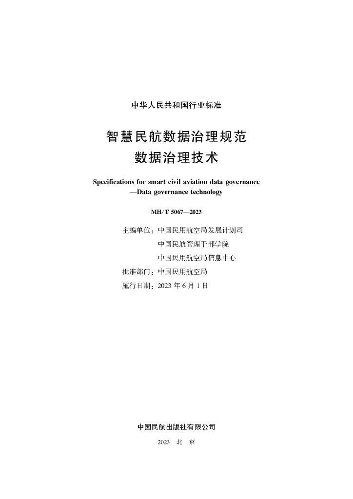 MH/T 5067-2023 智慧民航数据治理规范 数据治理技术