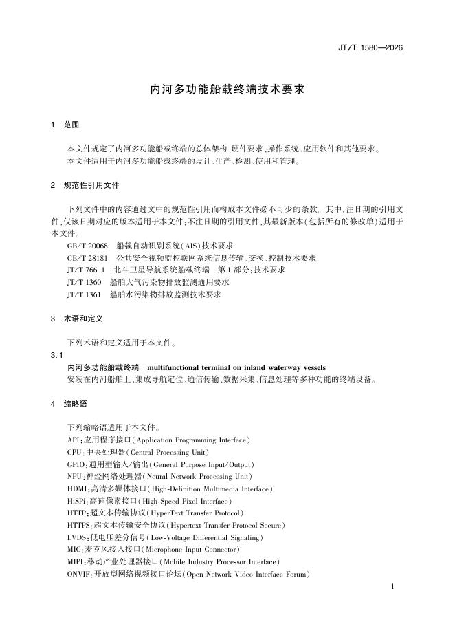 JT/T 1580-2026 内河多功能船载终端技术要求
