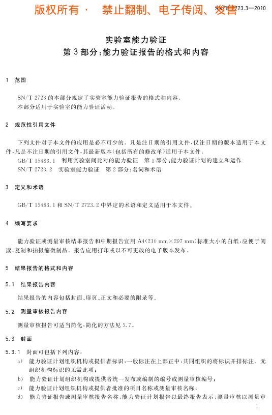 SN/T 2723.3-2010 实验室能力验证 第3部分:能力验证报告的格式和内容