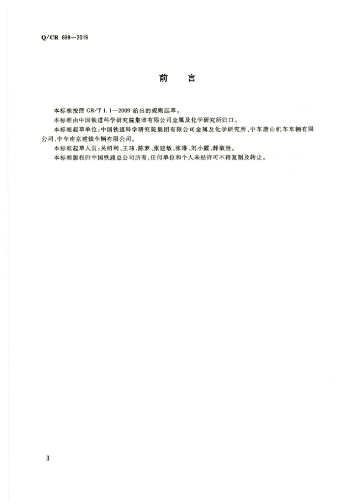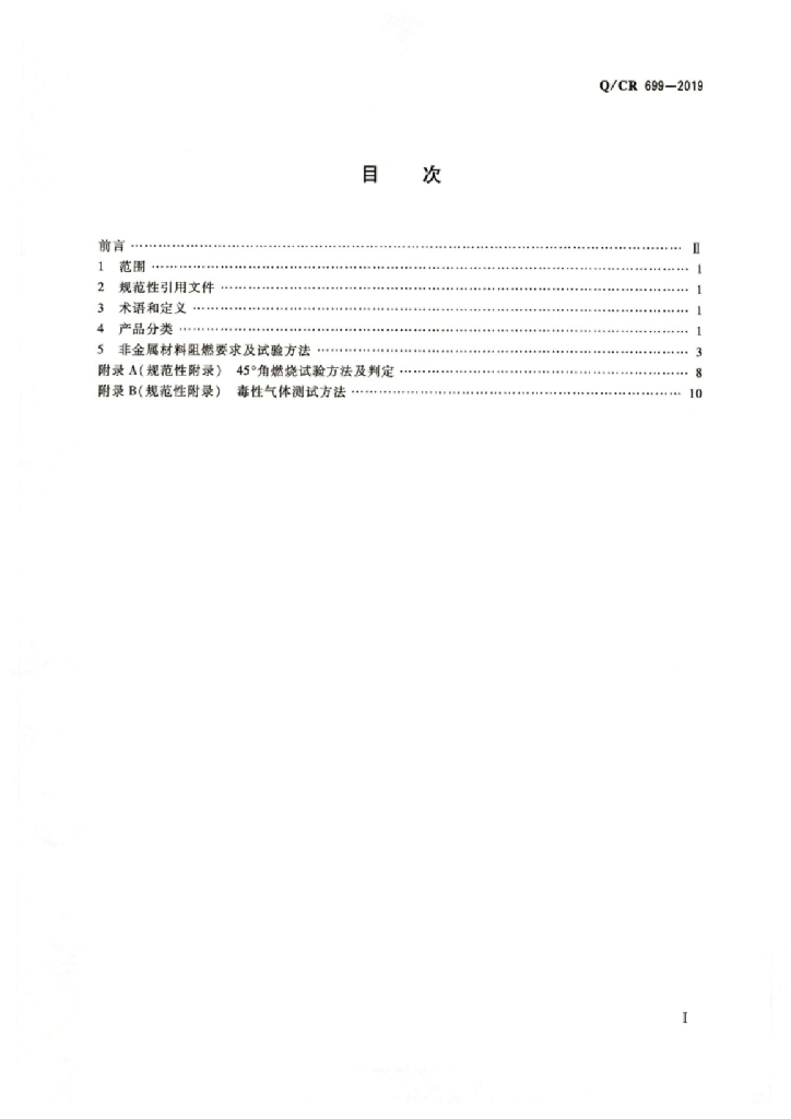 Q/CR 699-2019 铁路客车非金属材料阻燃技术条件