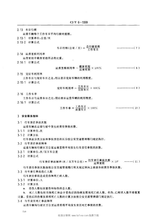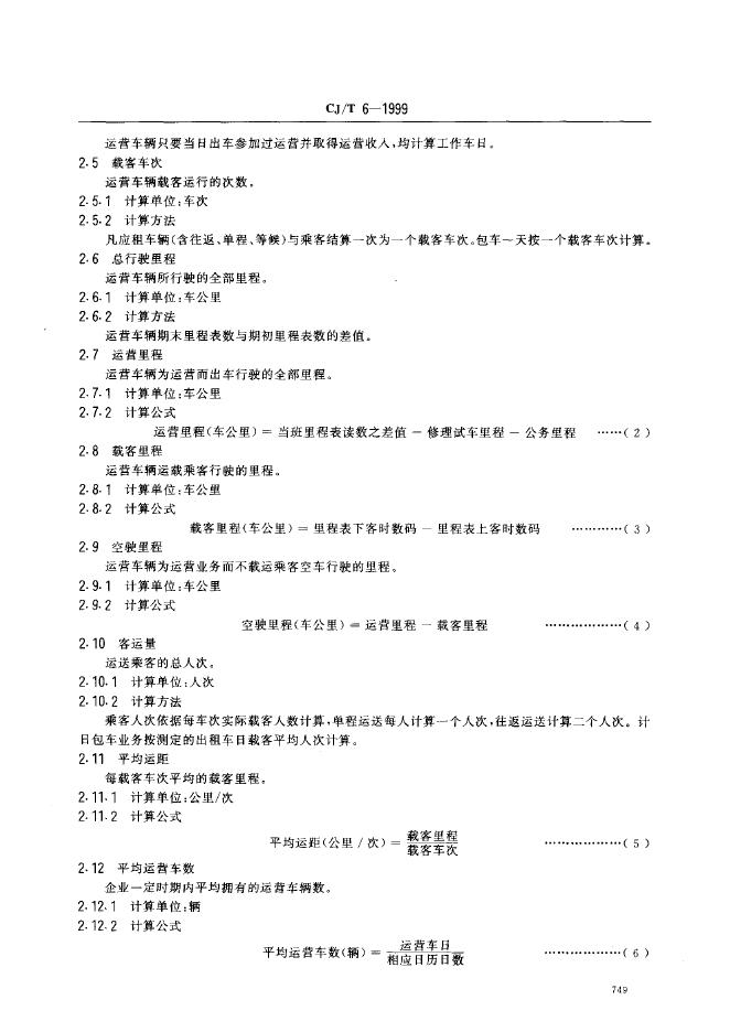 CJ/T 6-1999 城市公共交通技术经济指标计算方法 出租汽车