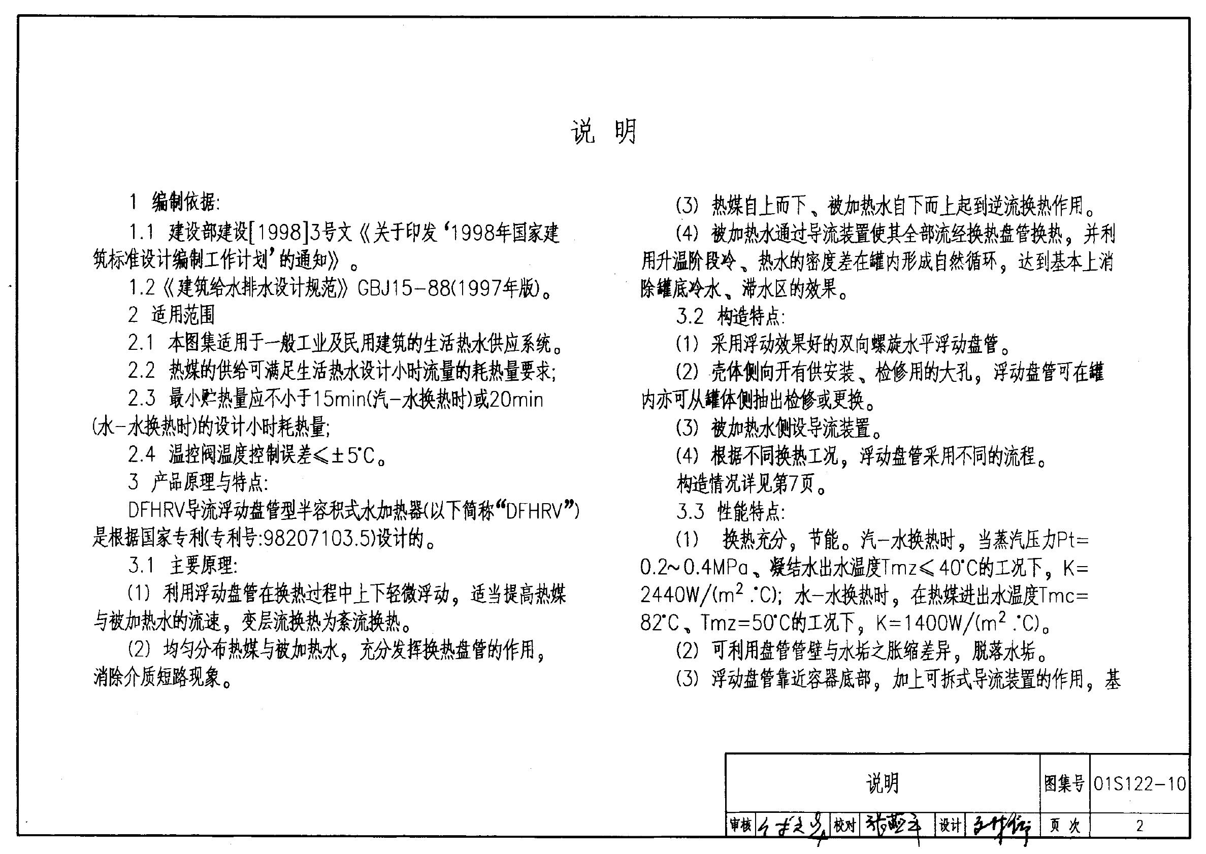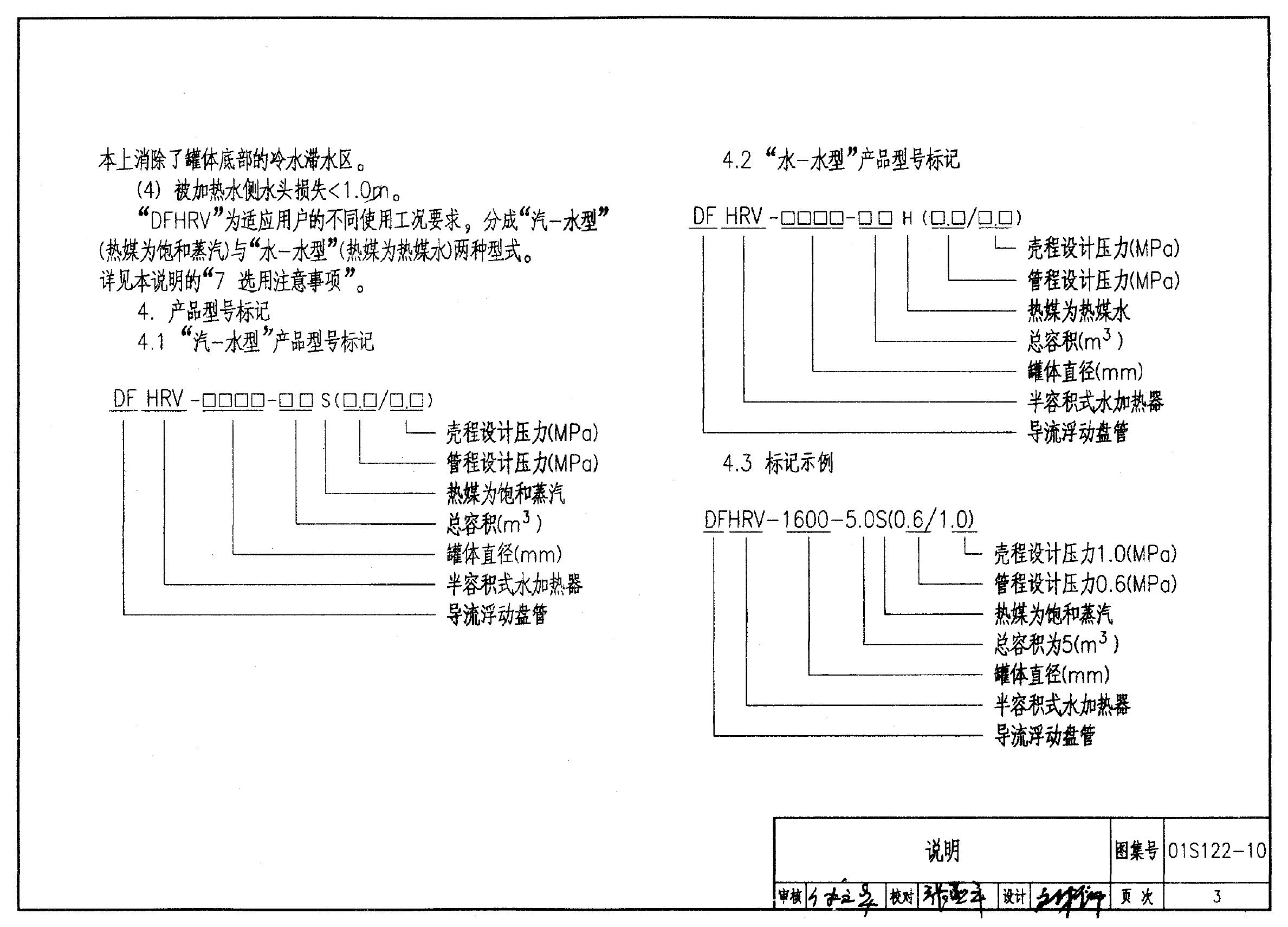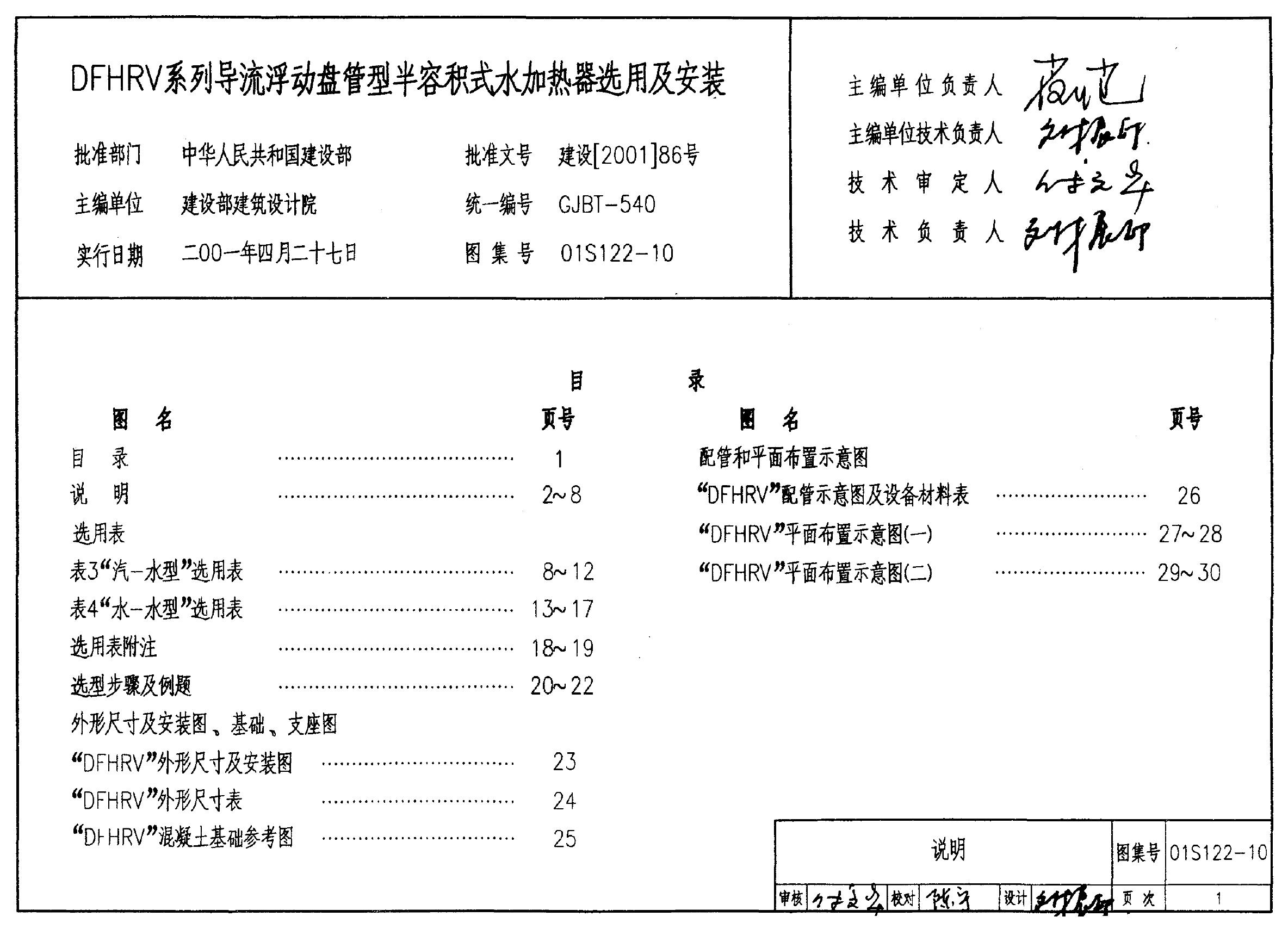 01S122-10 DFHRV系列导流浮动盘管型半容积式水加热器选用及安装图集