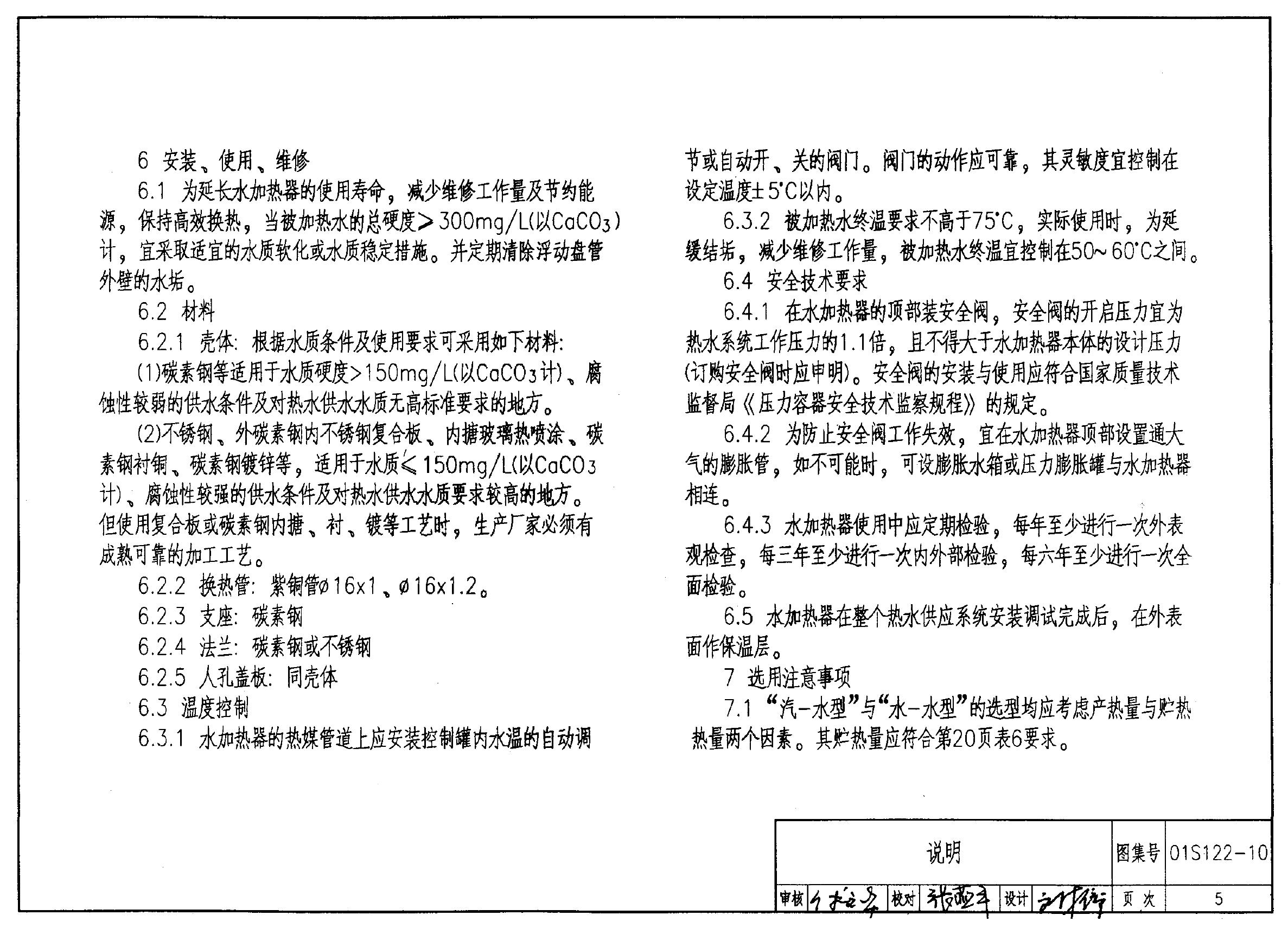 - 101S122-8 TGT系列浮动盘管型半即热式水加热器选用及安装图集