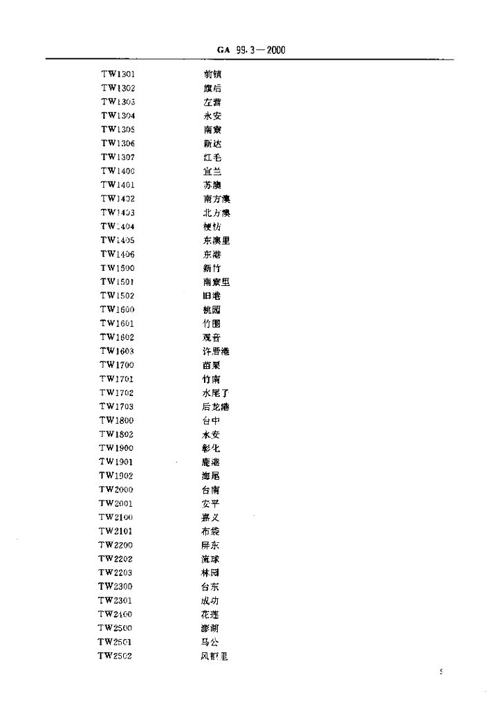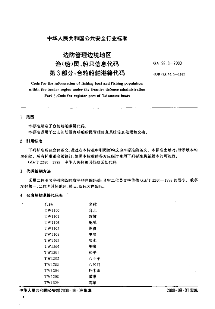 GA 99.3-2000 边防管理边境地区 渔(船)民、船只信息代码 第3部分 台轮船舶港籍代码