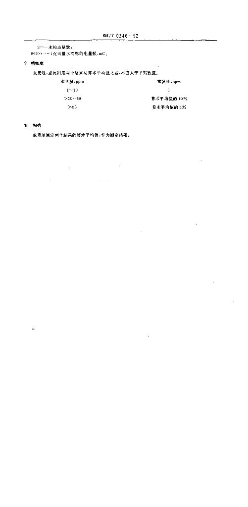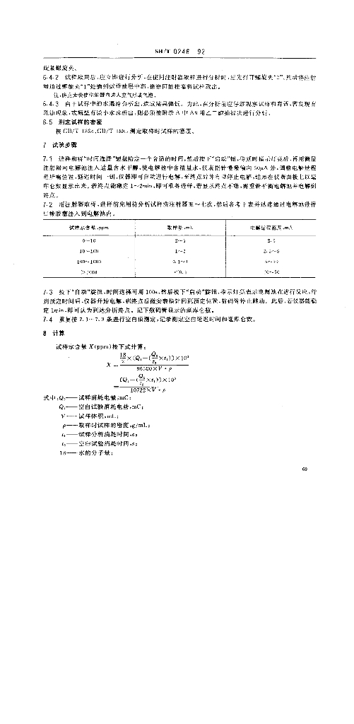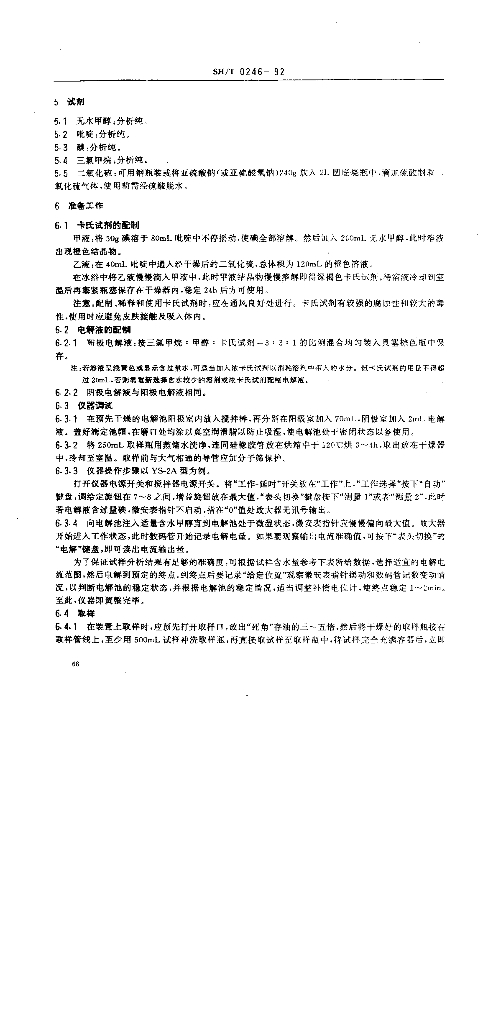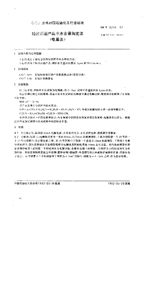 SH/T 0246-1992 轻质石油产品中水含量测定法(电量法)