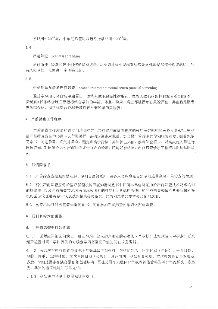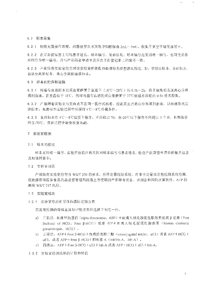 WS 322.1-2010 胎儿常见染色体异常与开放性神经管缺陷的产前筛查与诊断技术标准 第1部分:中孕期母血清学产前筛查