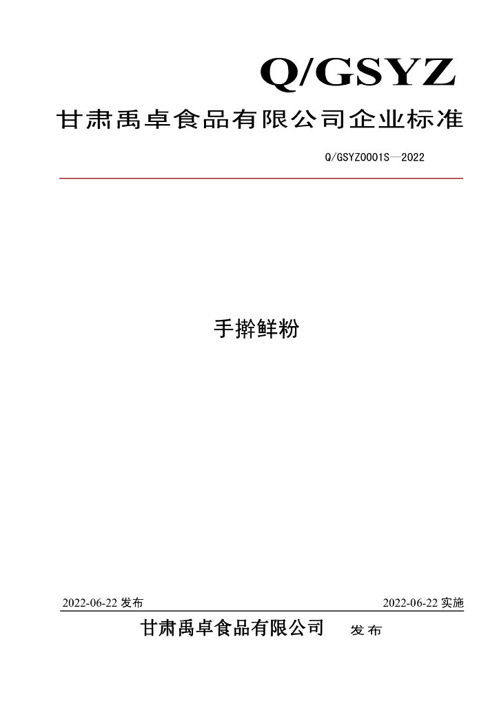 Q/GSYZ 0001S-2022 手擀鲜粉