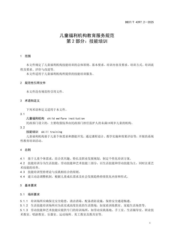 DB37/T 4397.2-2025 儿童福利机构教育服务规范 第2部分:技能培训