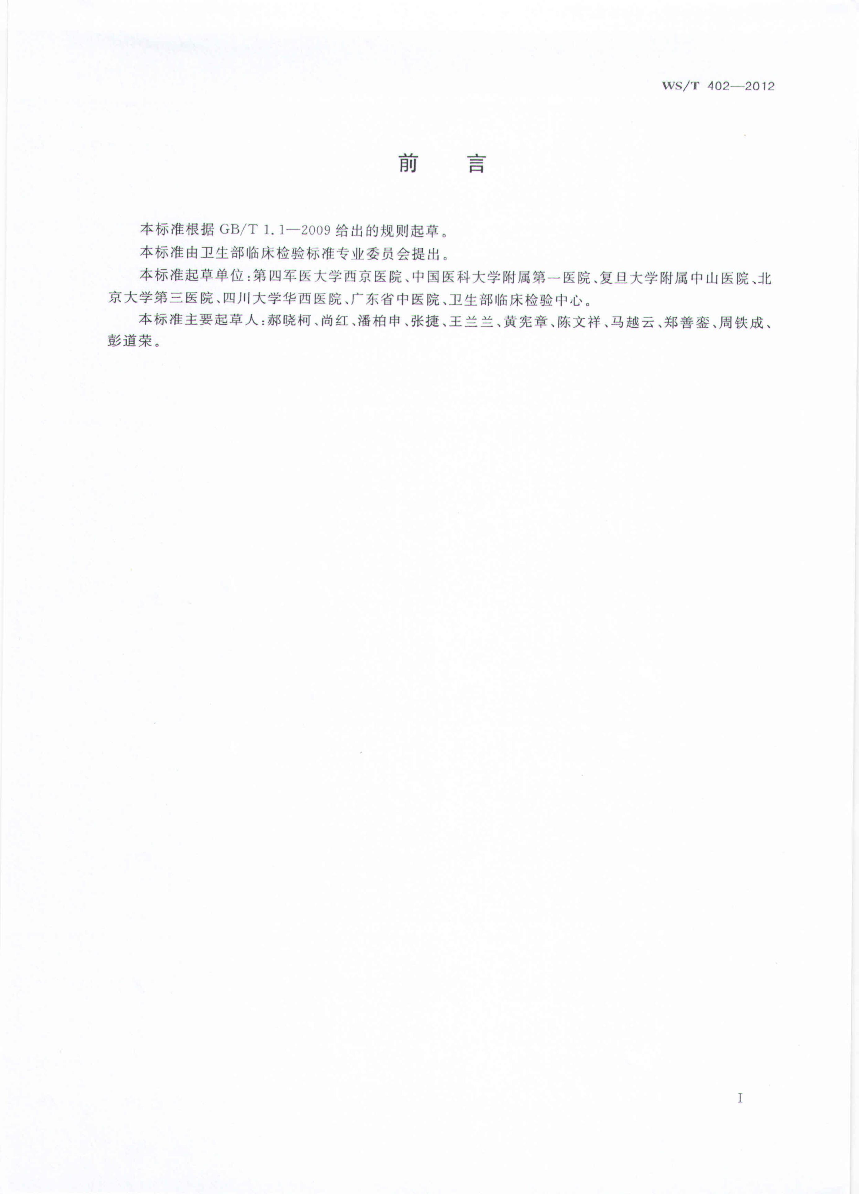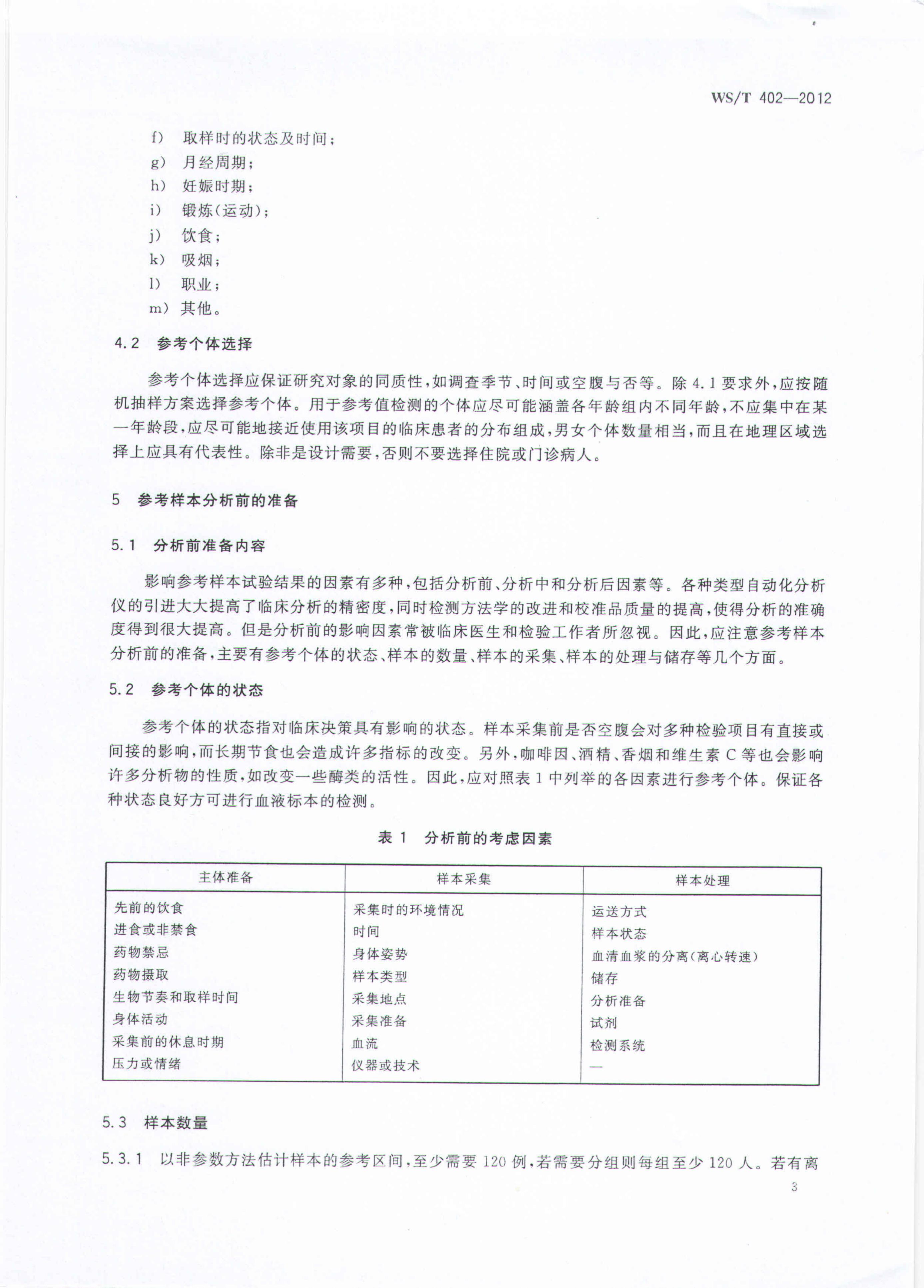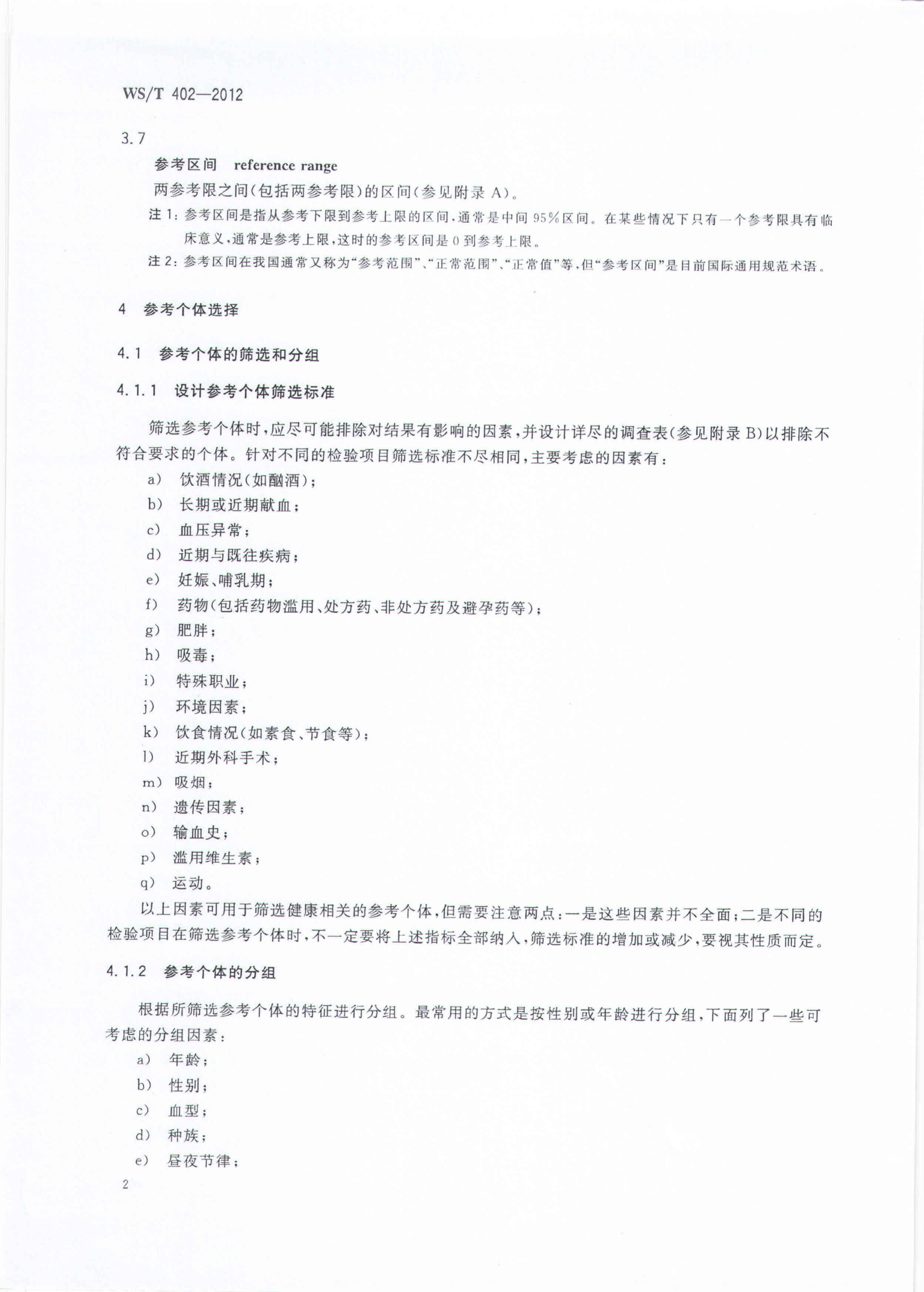 WS/T 402-2012 临床实验室检验项目参考区间的制定