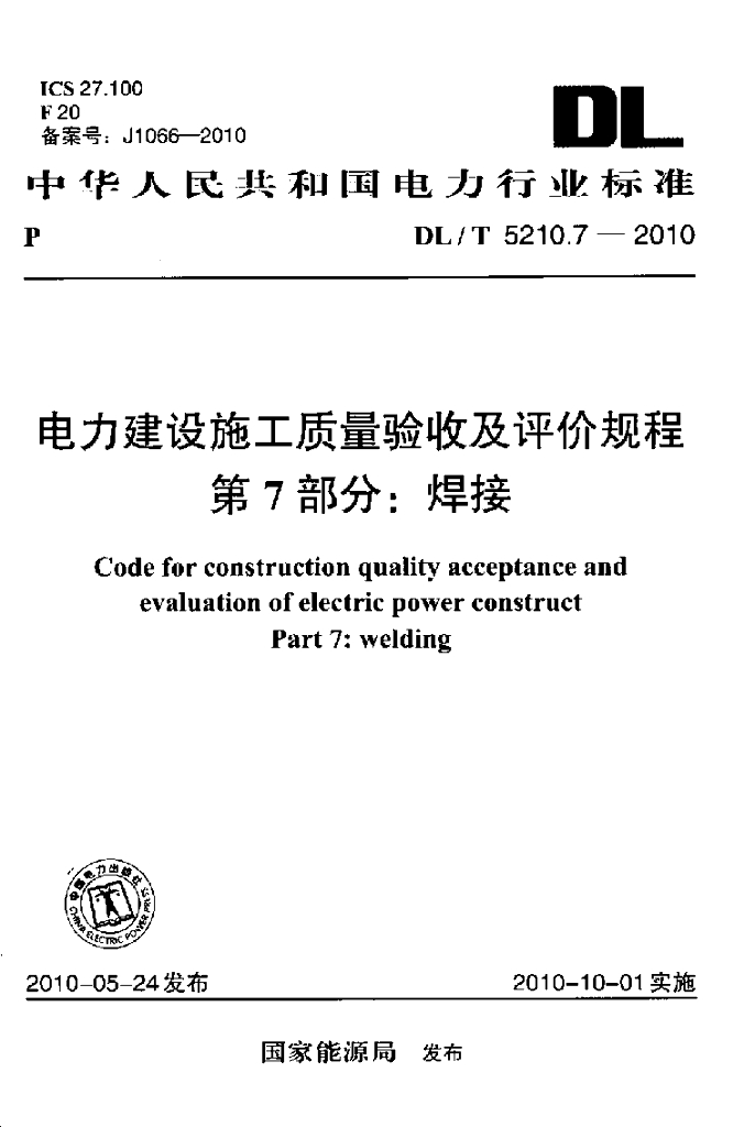 DL/T 5210.7-2010 电力建设施工质量验收及评定规程 第7部分:焊接