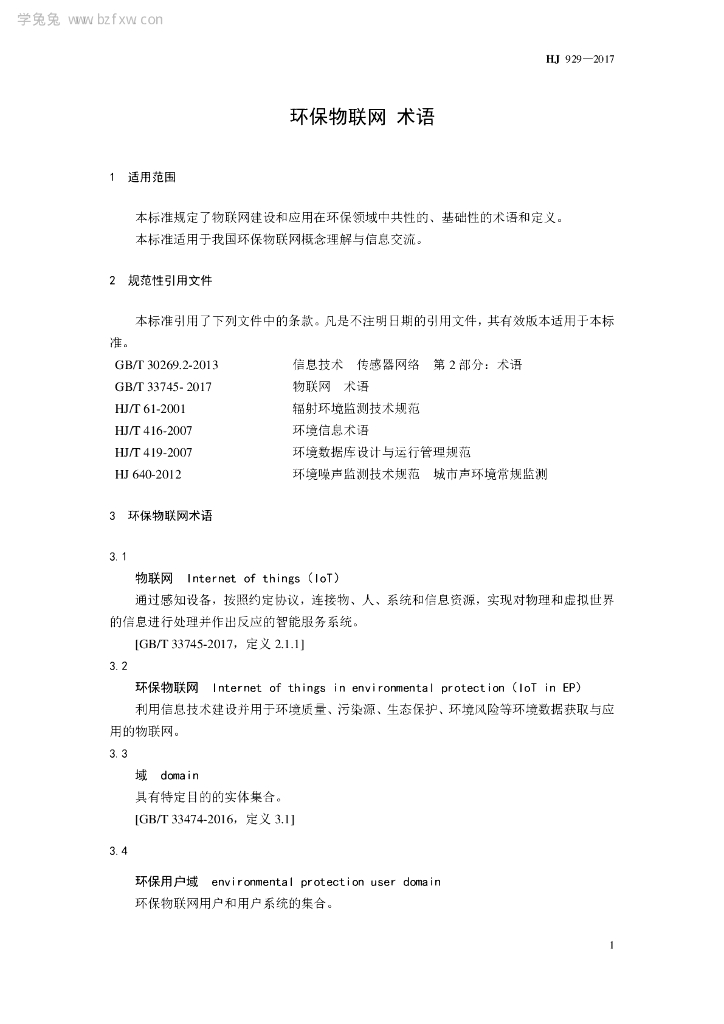 HJ 929-2017 环保物联网 术语