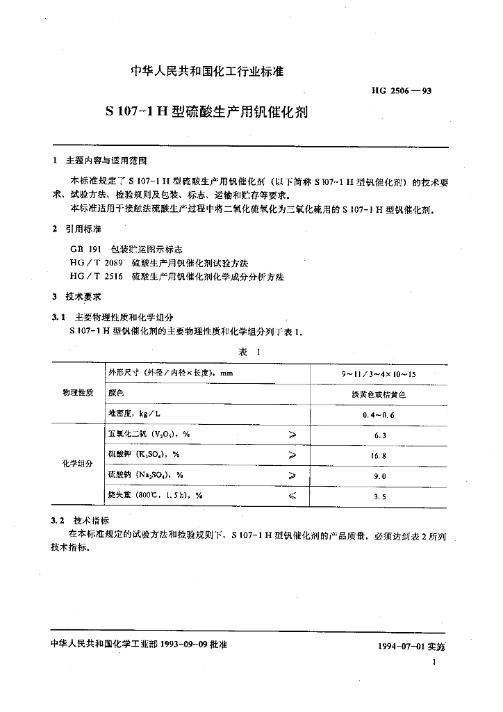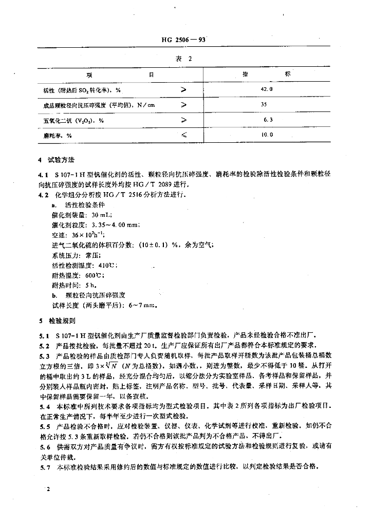 HG 2506-1993 S107-1H型硫酸生产用钒催化剂