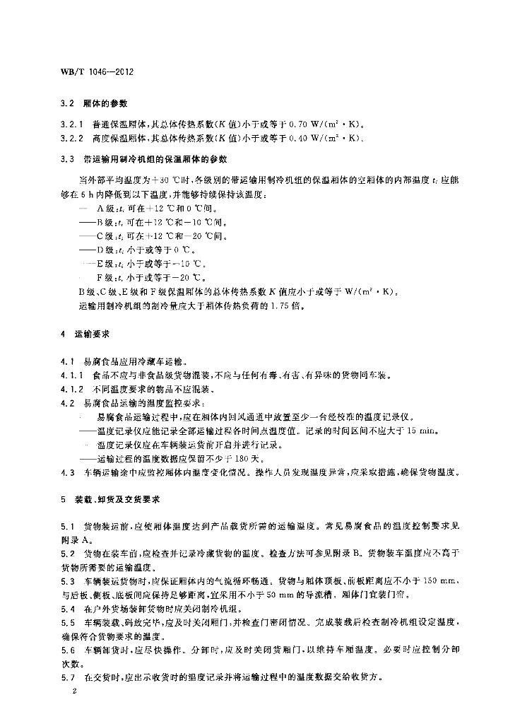 WB/T 1046-2012 易腐食品机动车辆冷藏运输要求