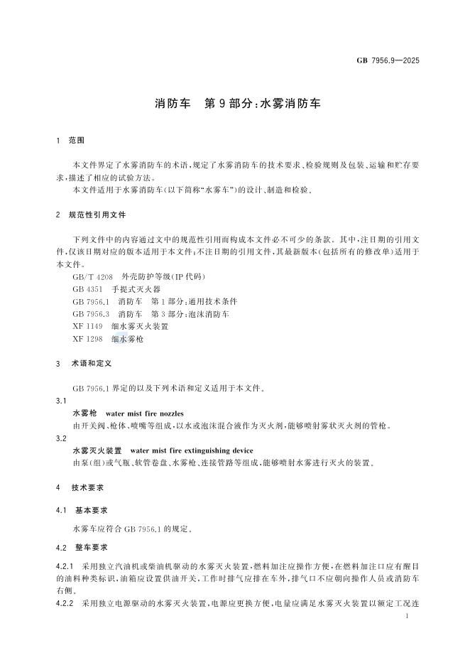 GB 7956.9-2025 消防车 第9部分:水雾消防车