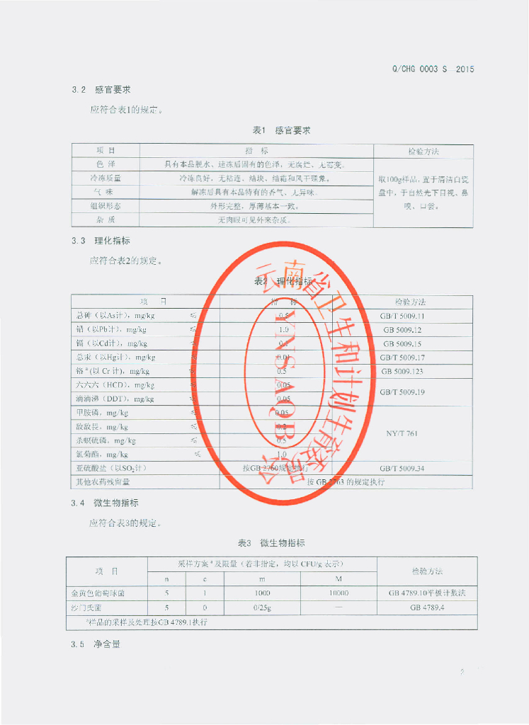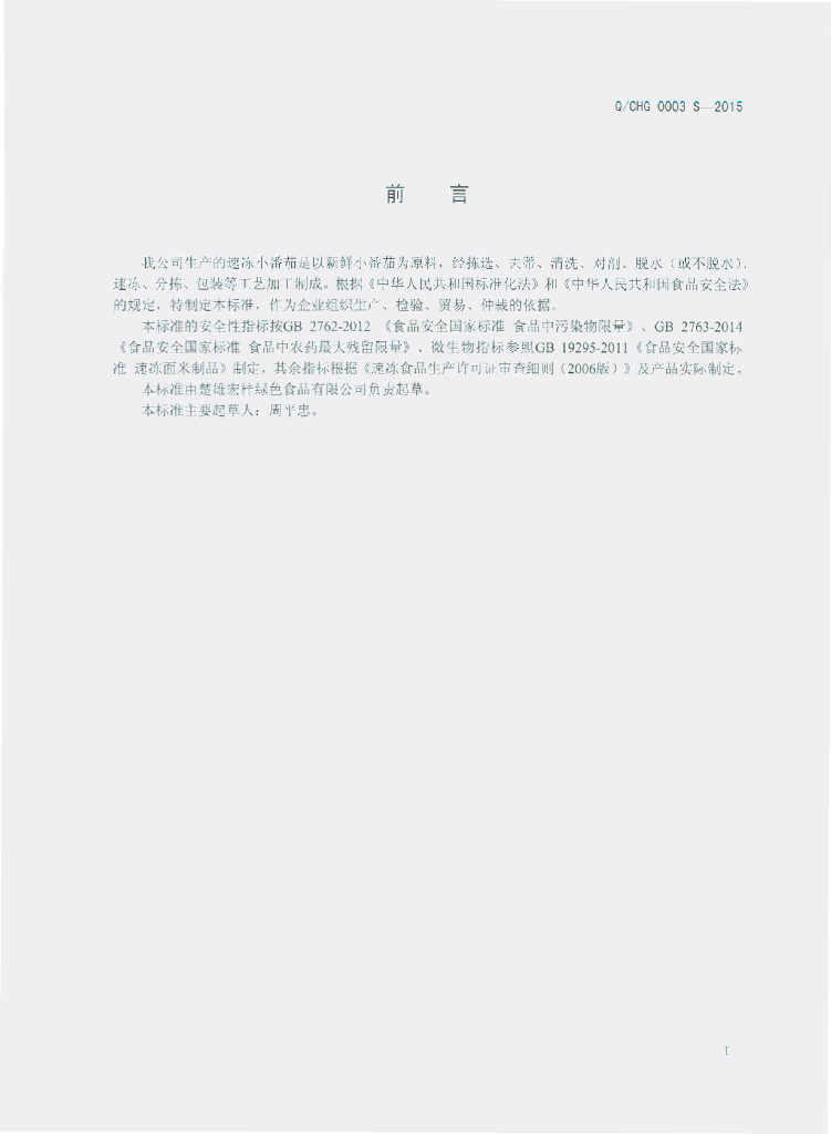 Q/CHG 0003S-2015 楚雄宏桂绿色食品有限公司 速冻小番茄
