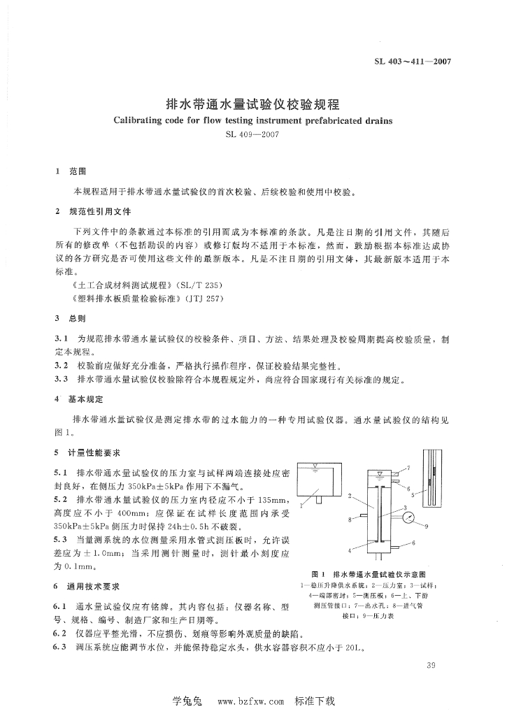 SL 409-2007 排水带通水量试验仪校验规程