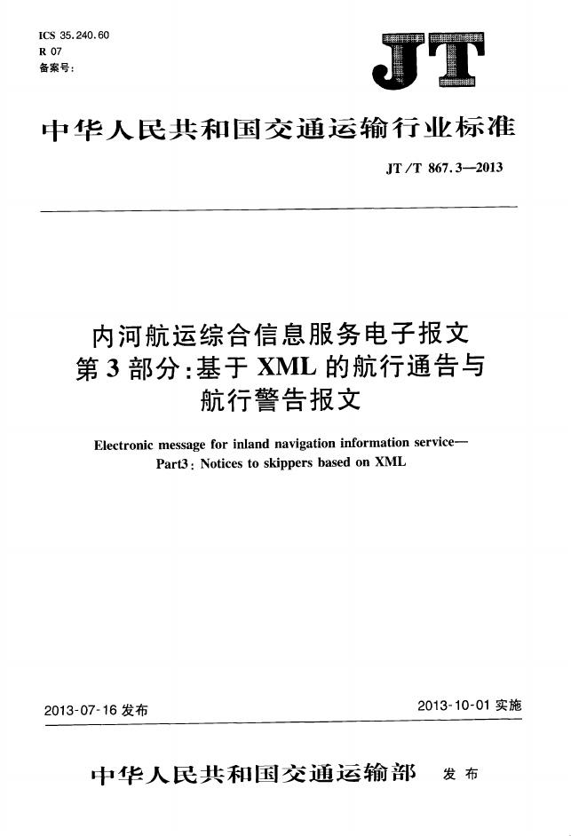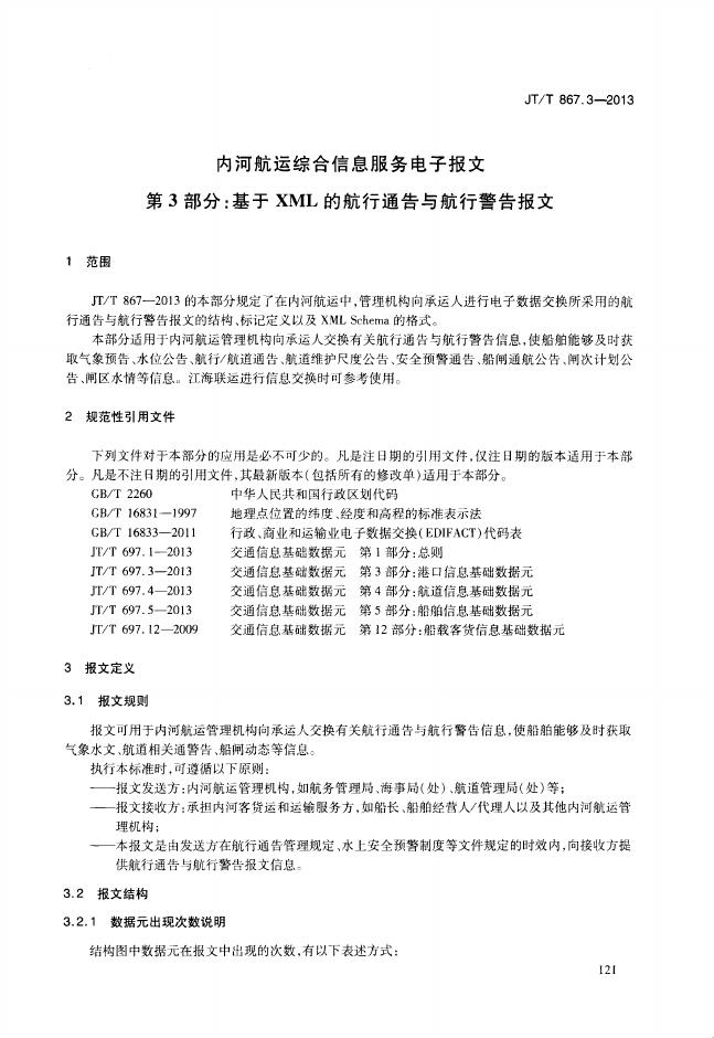 JT/T 867.3-2012 内河航运综合信息服务电子报文 第3部分:基于XML的航行通告与航行警告报文