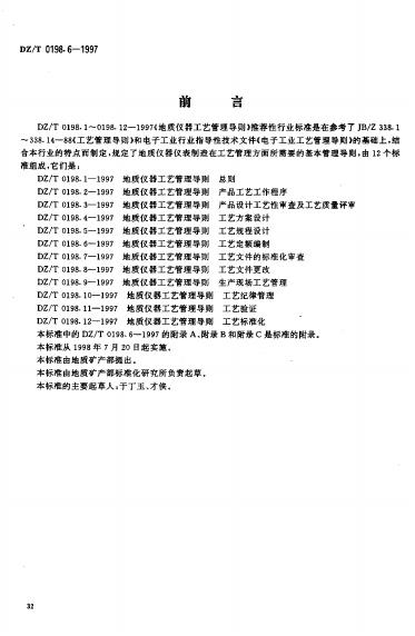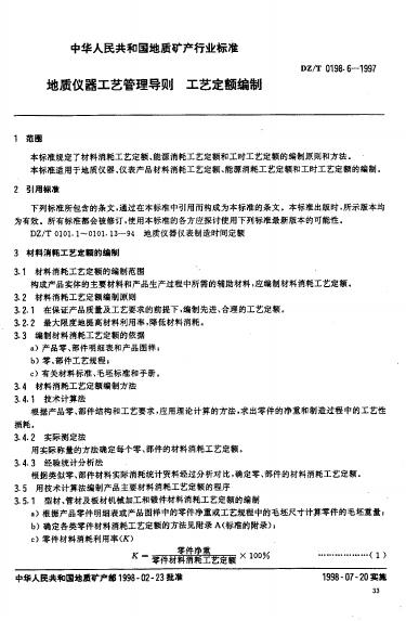 DZ/T 0198.6-1997 地质仪器工艺管理导则 工艺定额编制