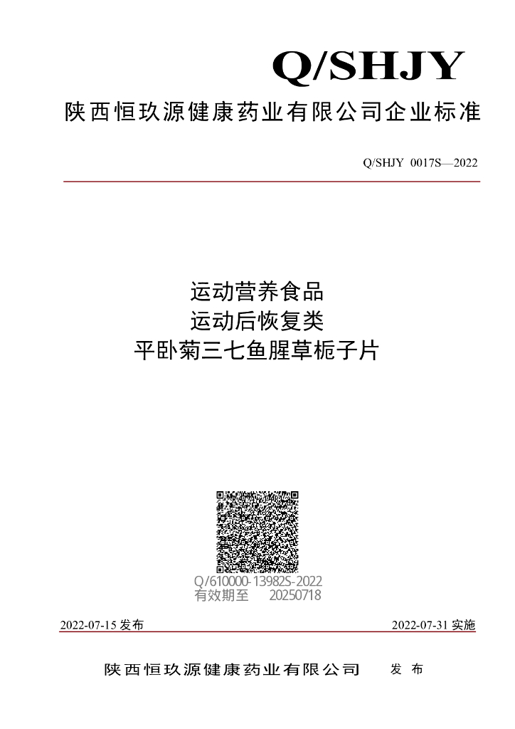Q/SHJY 0017S-2022 运动营养食品 运动后恢复类 平卧菊三七鱼腥草栀子片