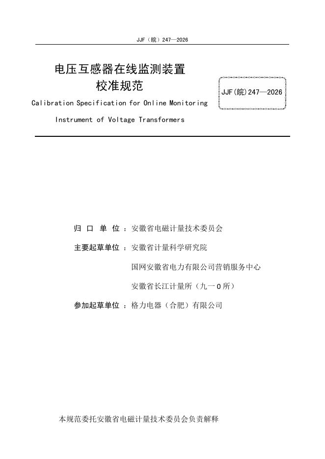 JJF(皖)247-2026 电压互感器在线监测装置校准规范