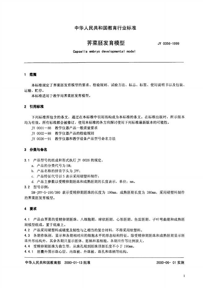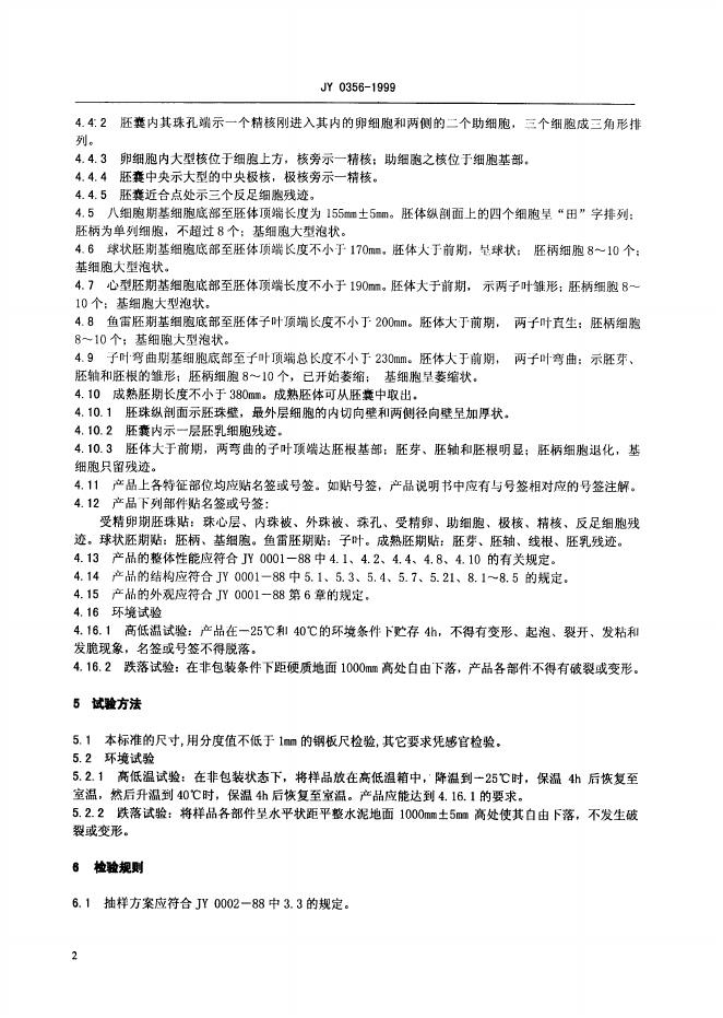 JY/T 0356-1999 荠菜胚发育模型